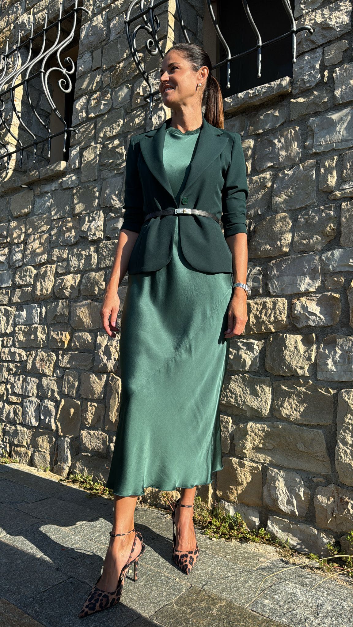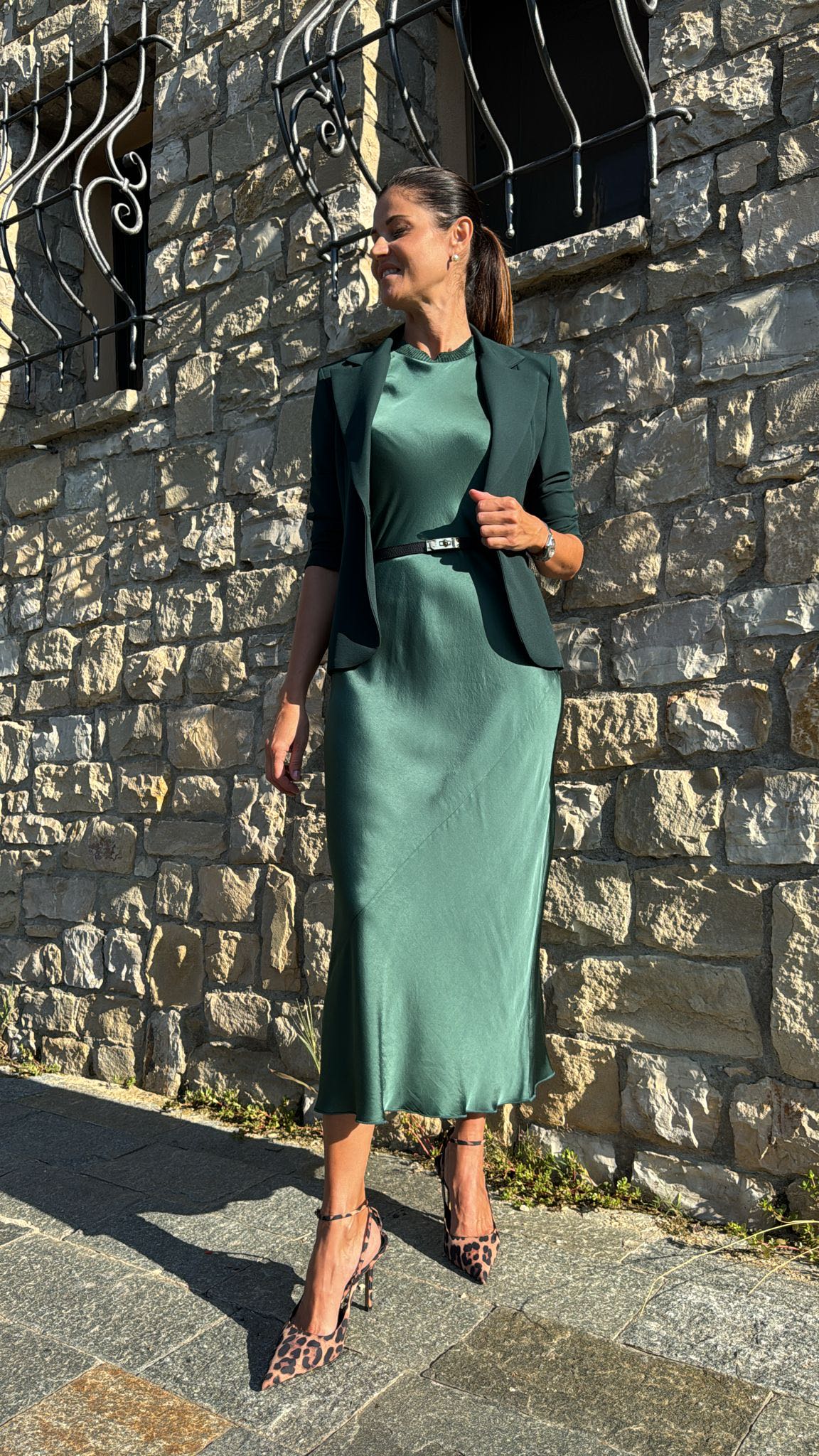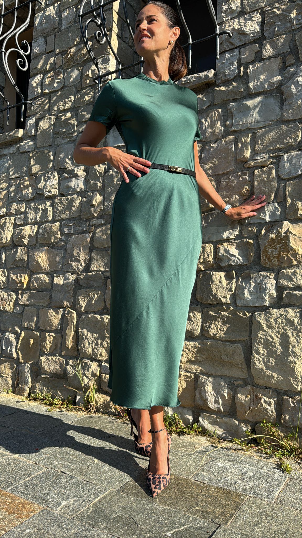 ABITO LUNGO GIROCOLLO VELLUTO VERDE BOSCO