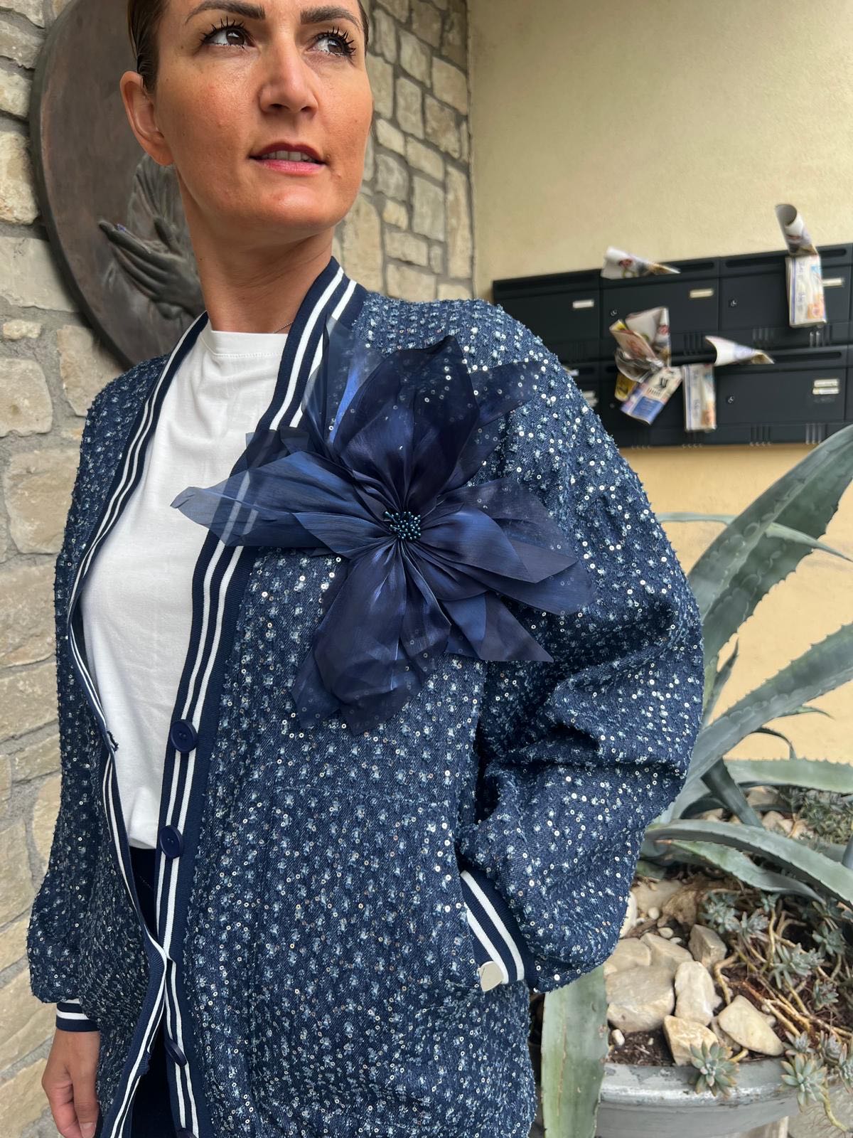 BOMBER JEANS MICRO PAILETTES BLU