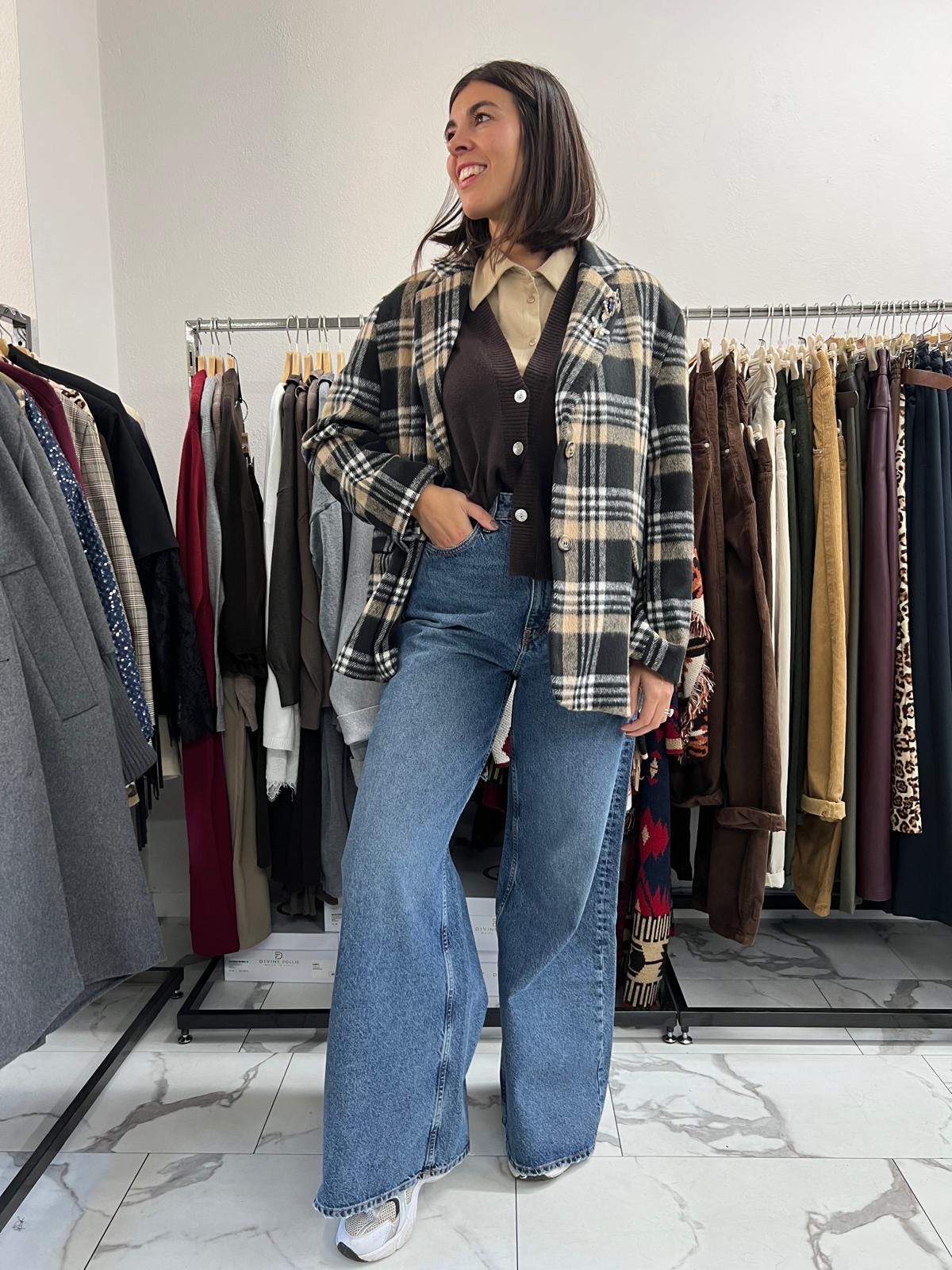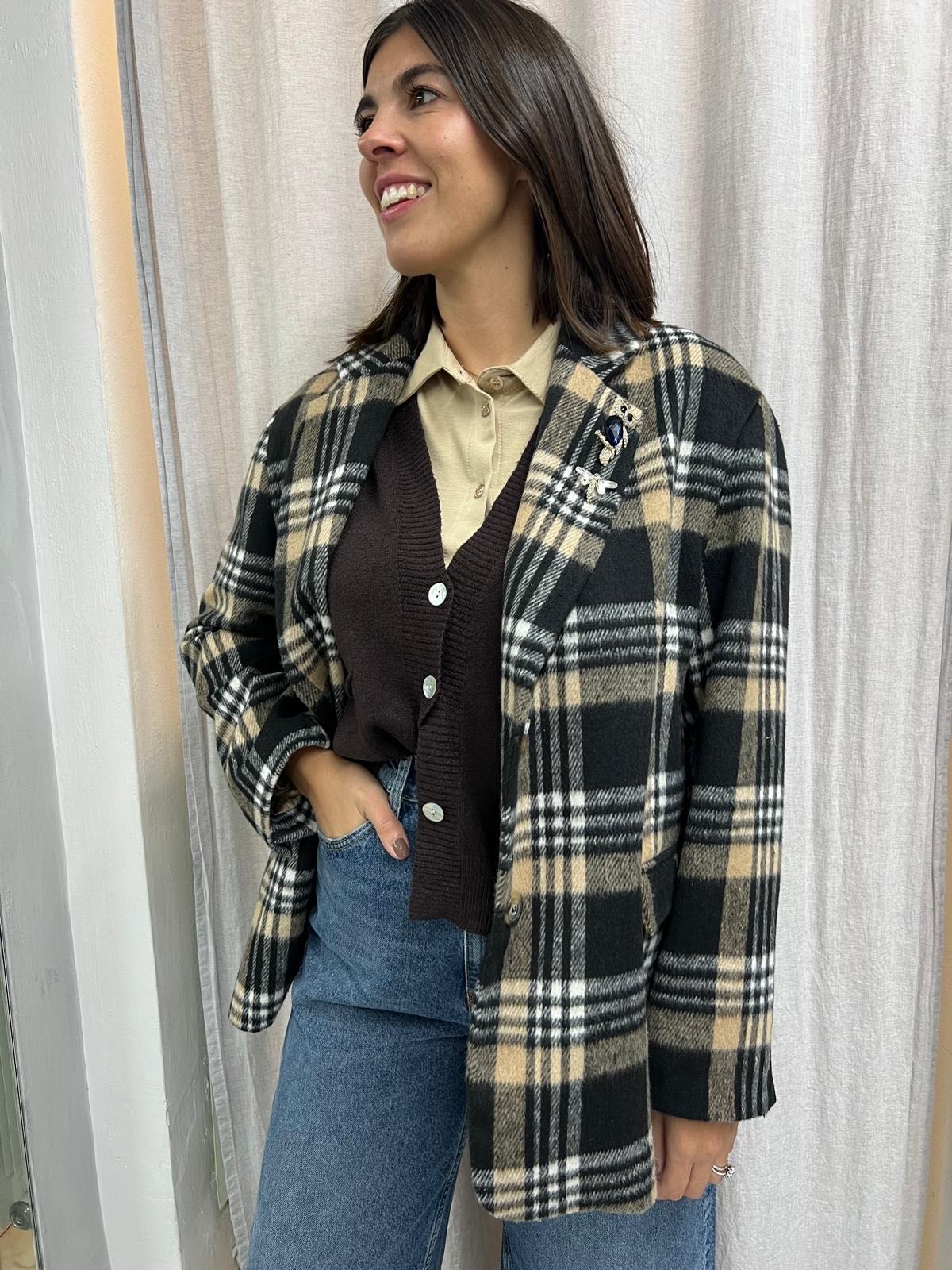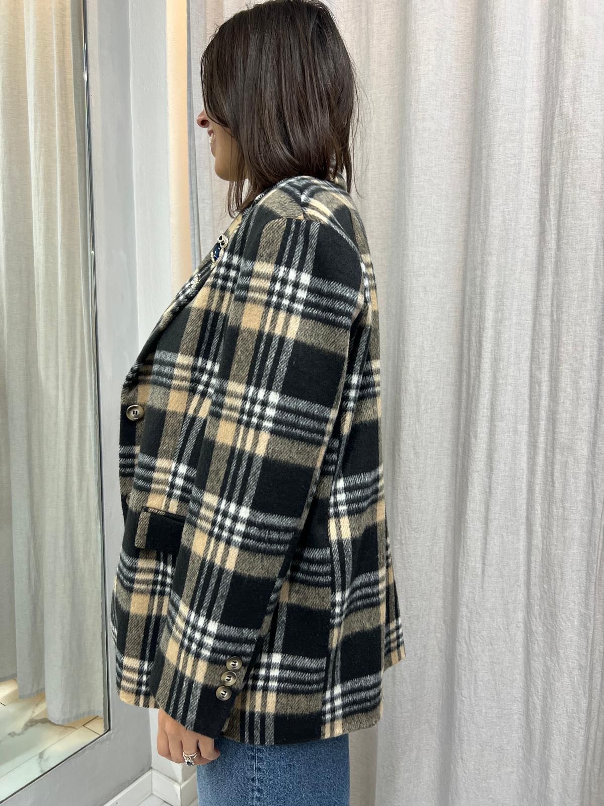 CAPPOTTINO OVER TARTAN CAMMELLO E NERO