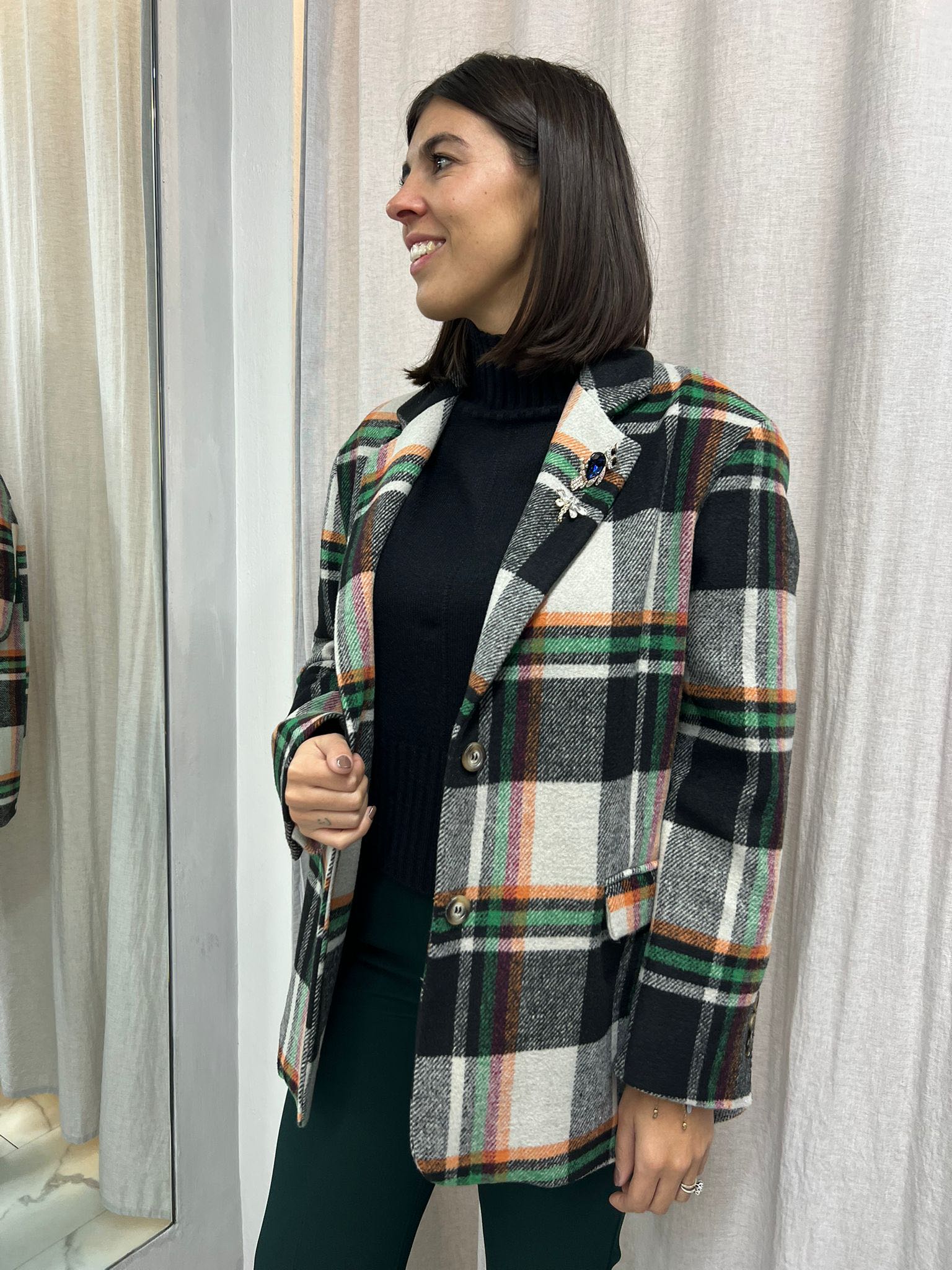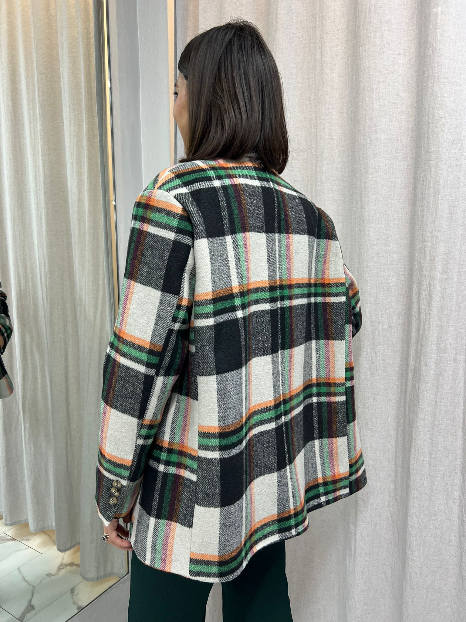 CAPPOTTINO OVER TARTAN VERDE ARANCIO NERO
