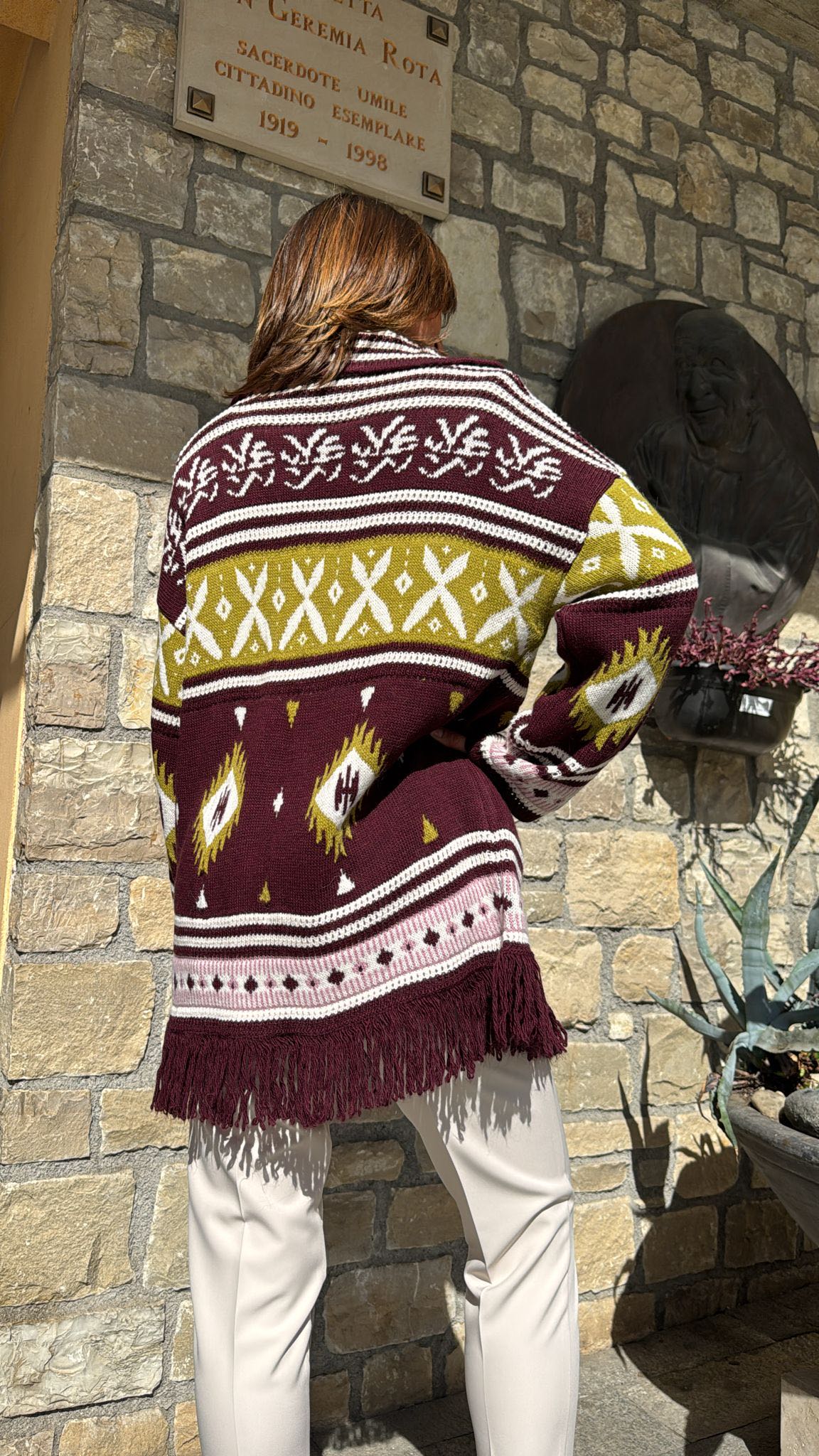 CAPPOTTO CARDIGAN IN MAGLIA BORDEAUX