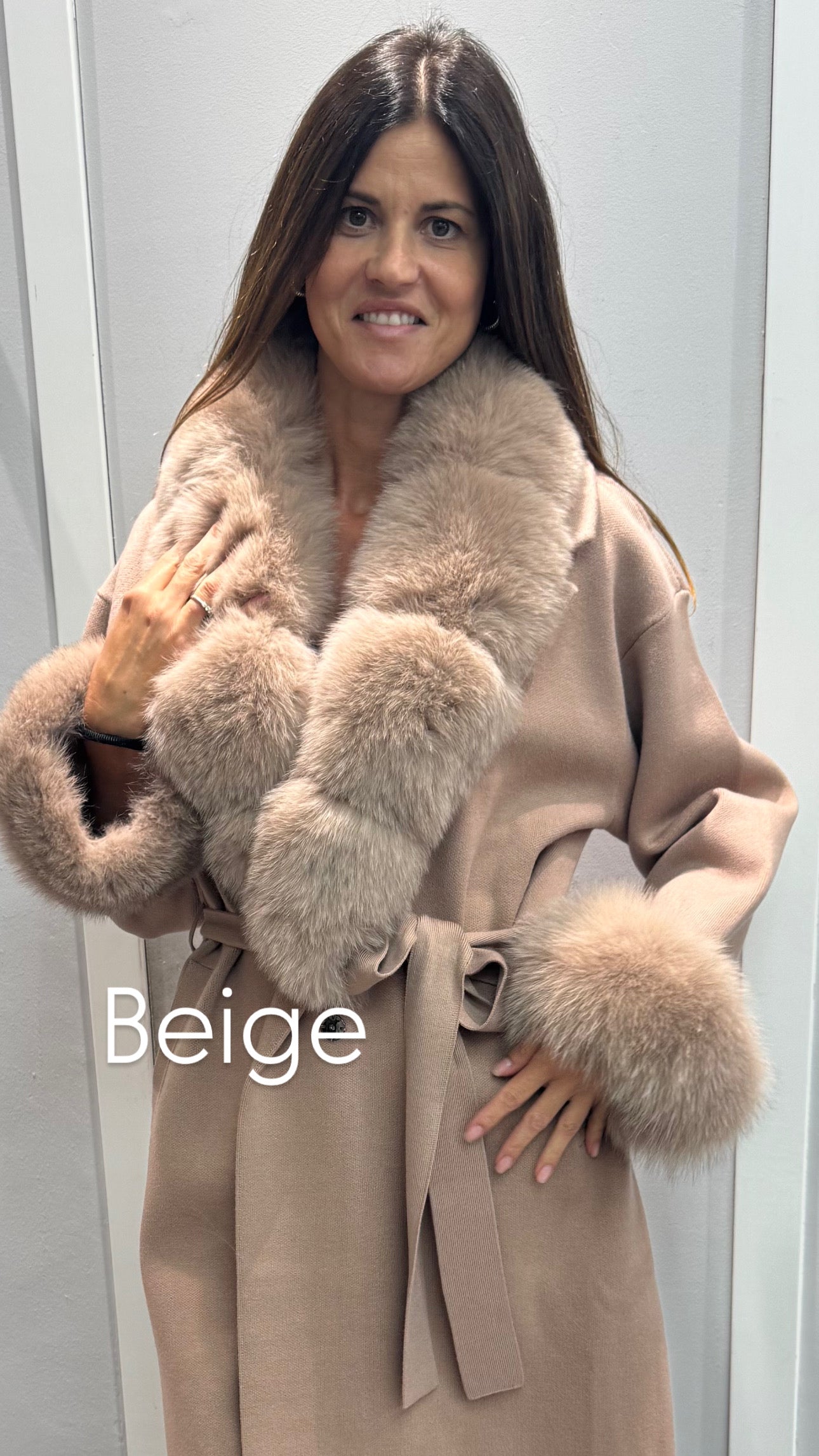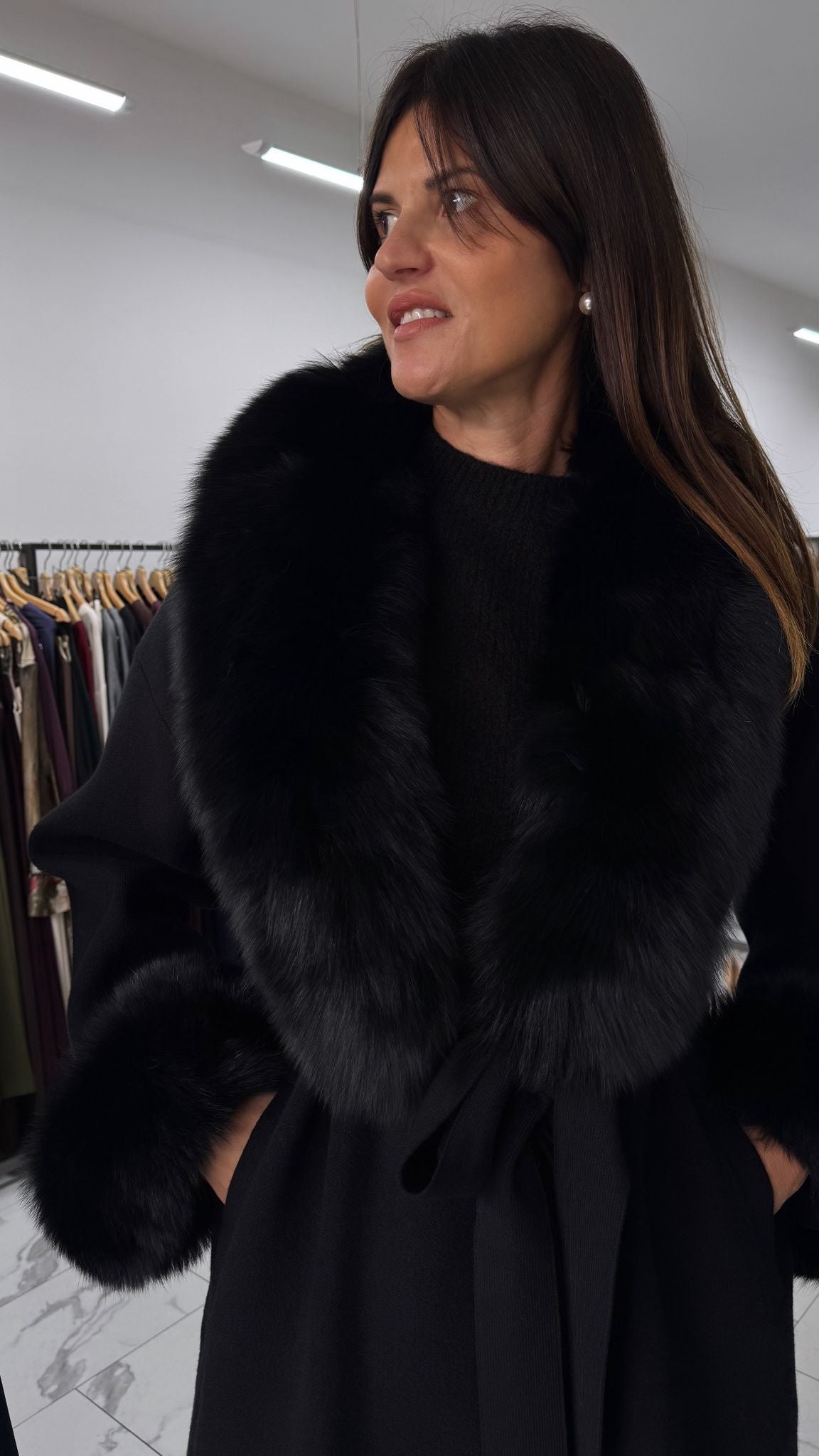 Cappotto in misto viscosa con bordi in ecopelliccia che si possono staccare