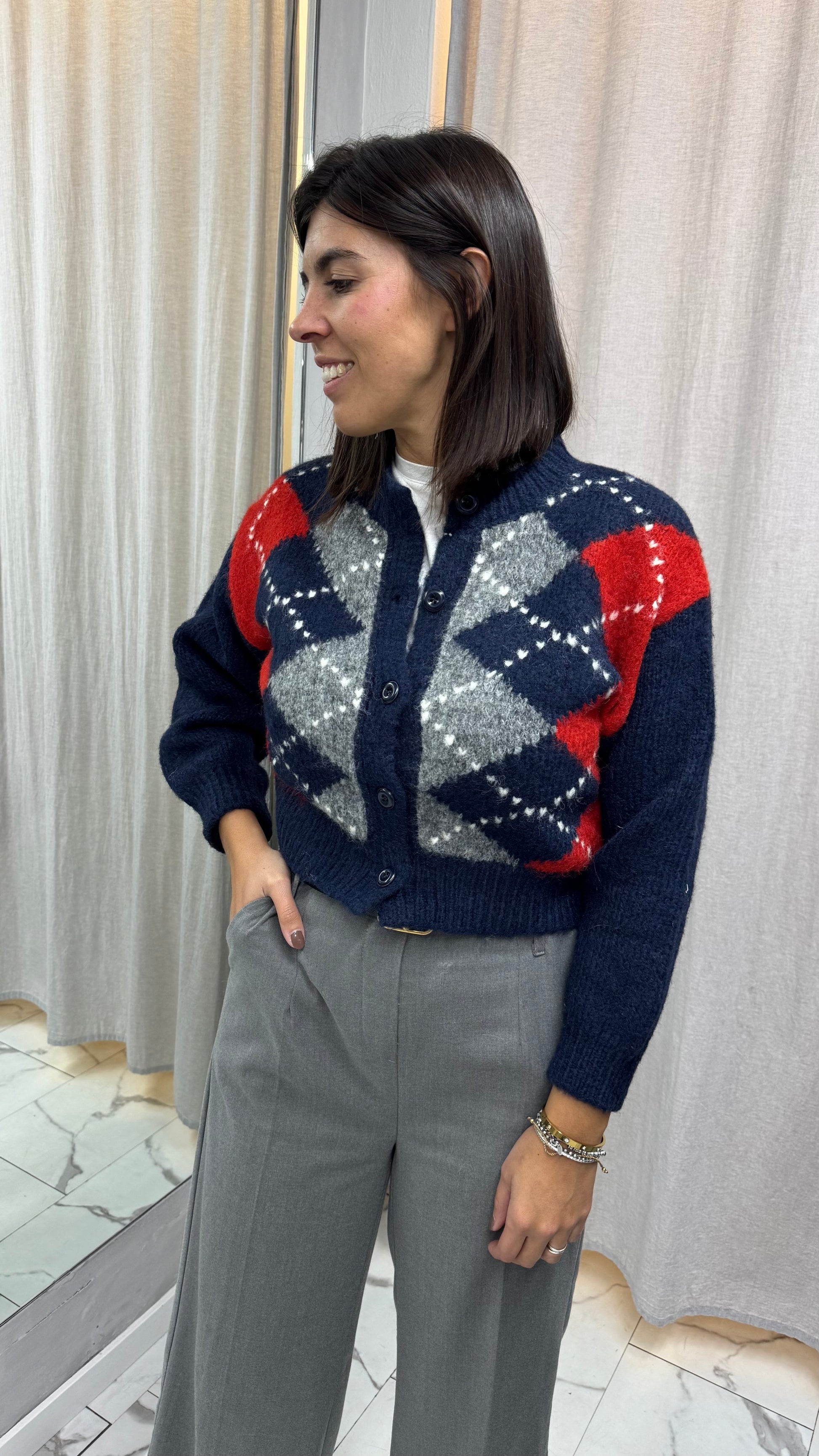 CARDIGAN CORTO LOSANGHE blu/marrone