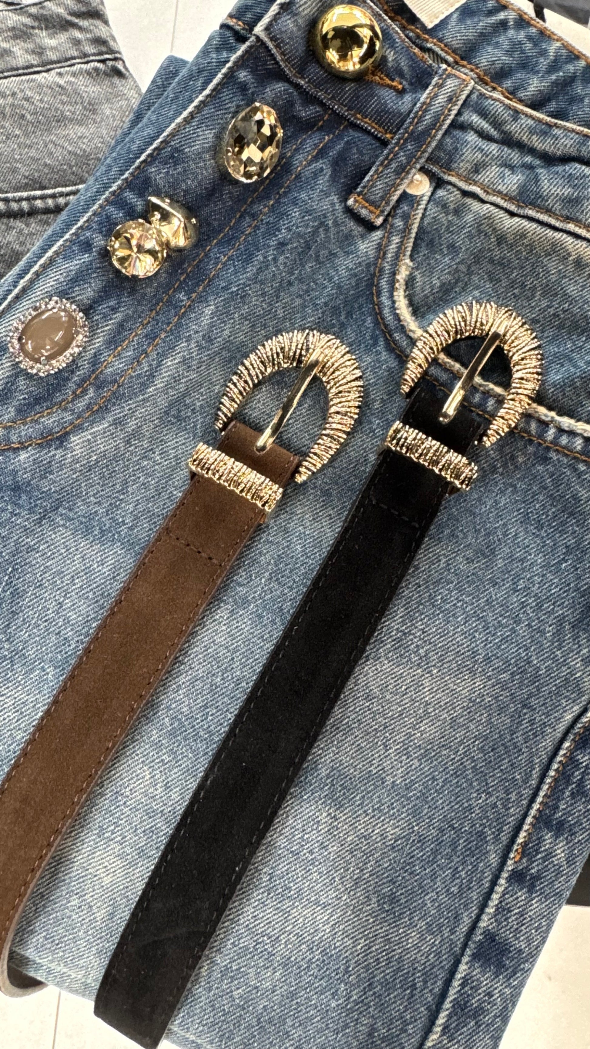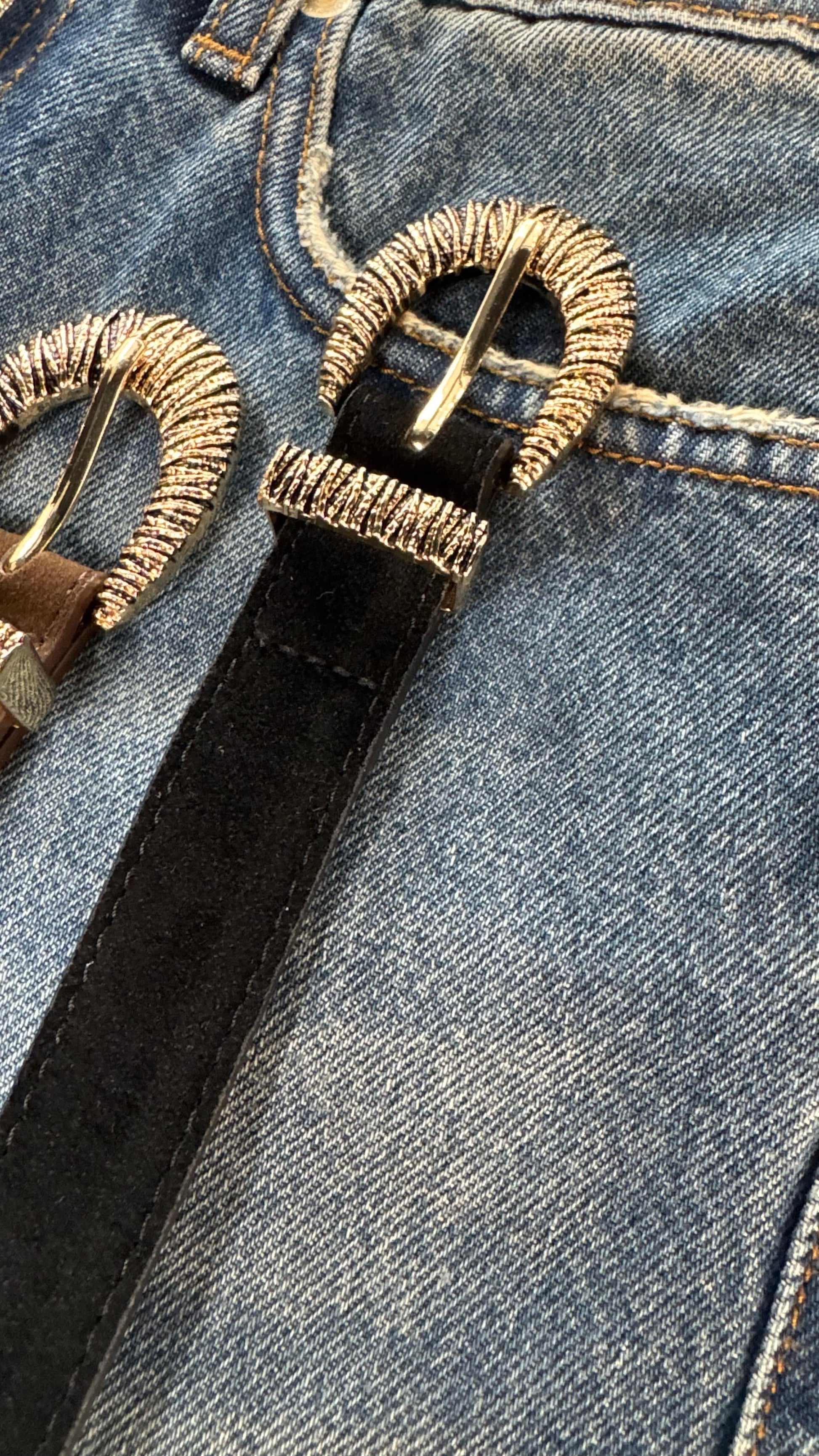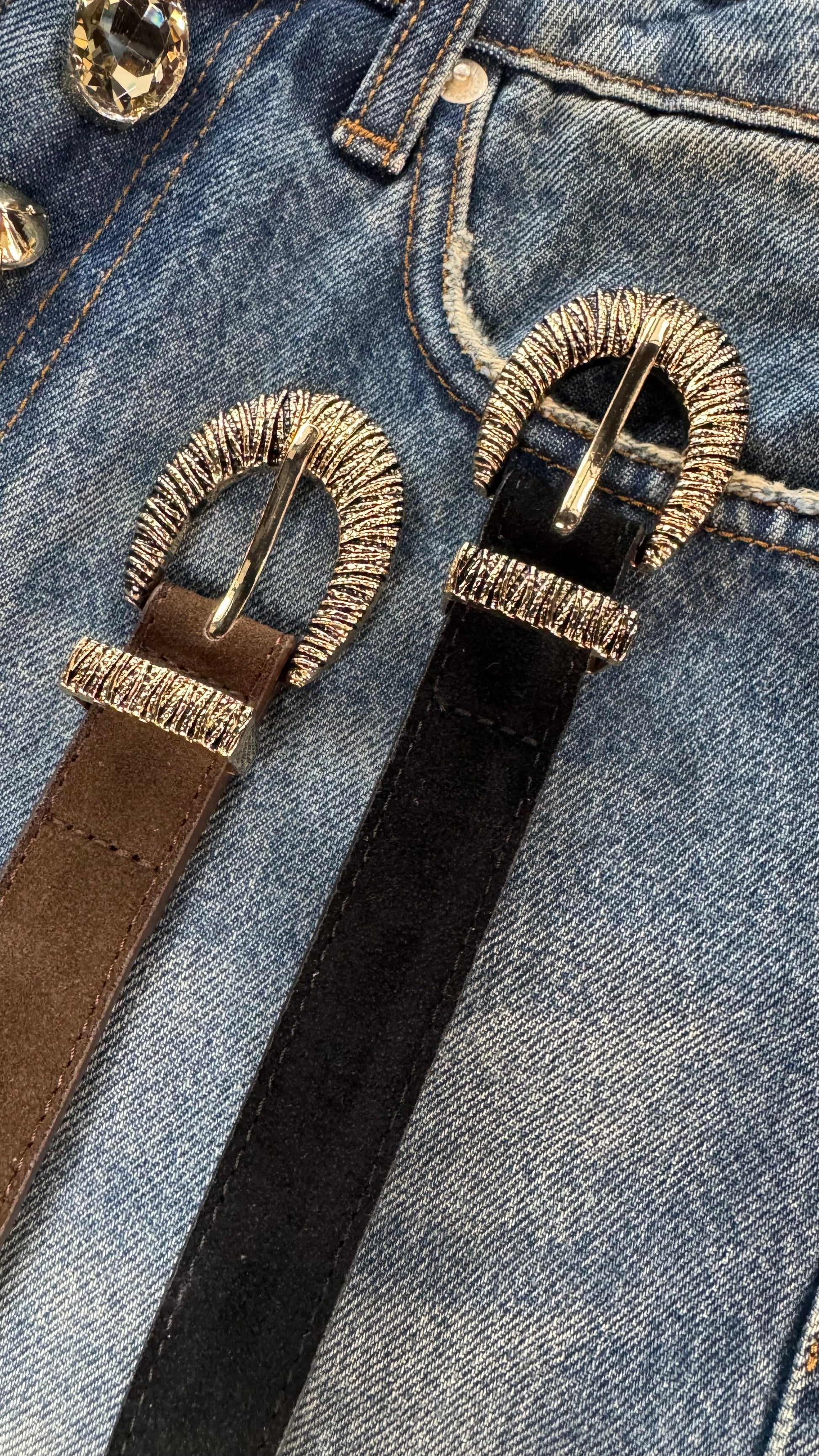 CINTURA FIBBIA LAVORATA cioccolato/nero