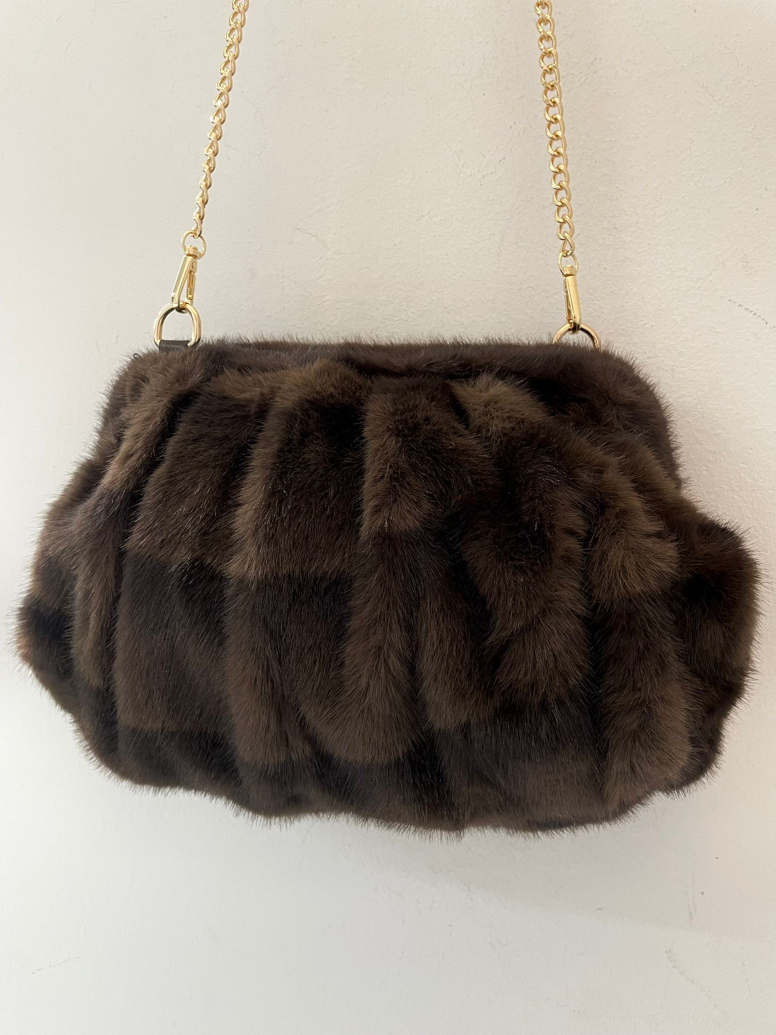 borsetta in ecopelleccia con tracolla catena oro
