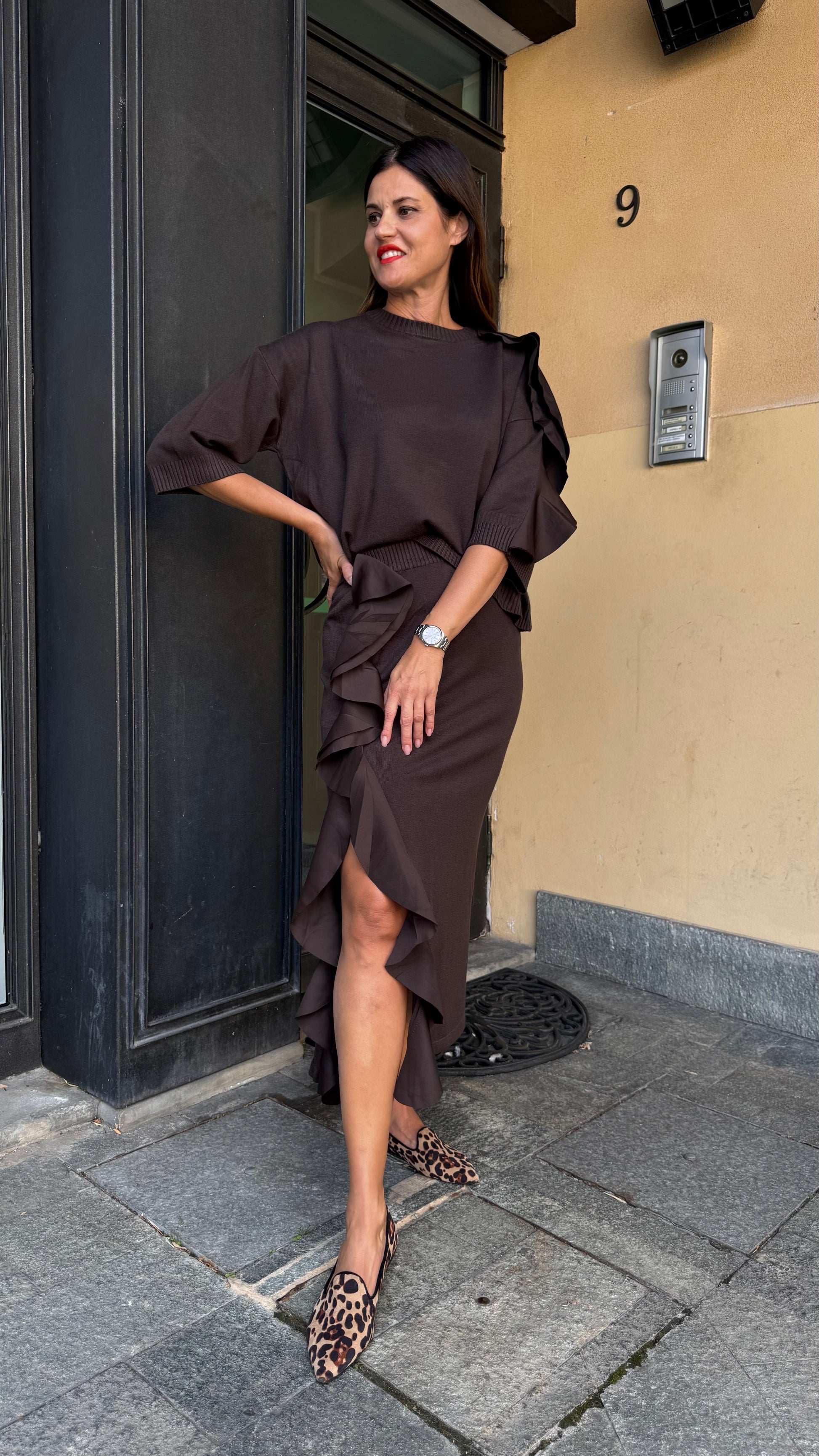 COMPLETO IN MAGLIA ROUGE ASIMMETRICA nero/grigio/cioccolato