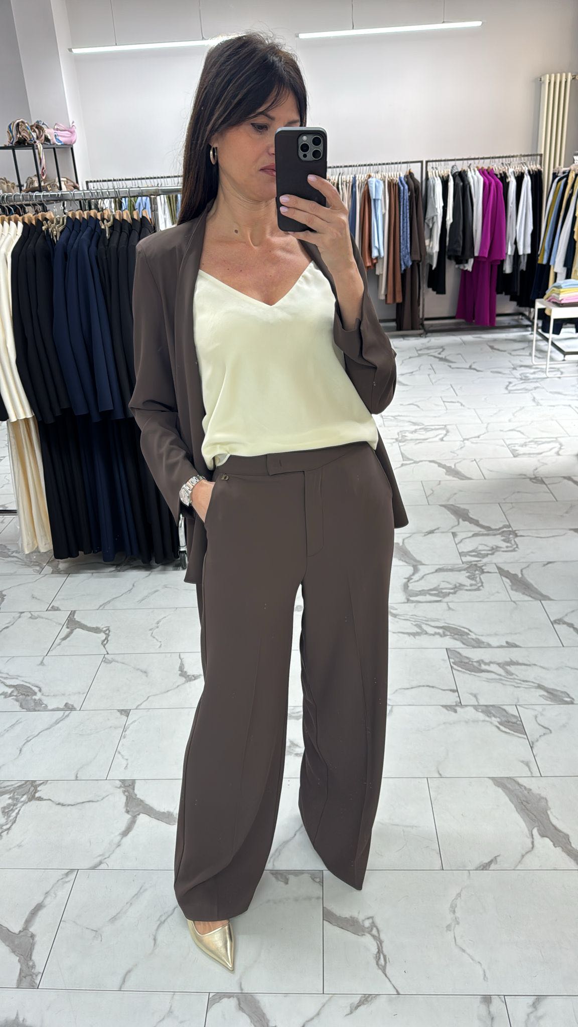 Pantalone fluido palazzo con tasche laterali