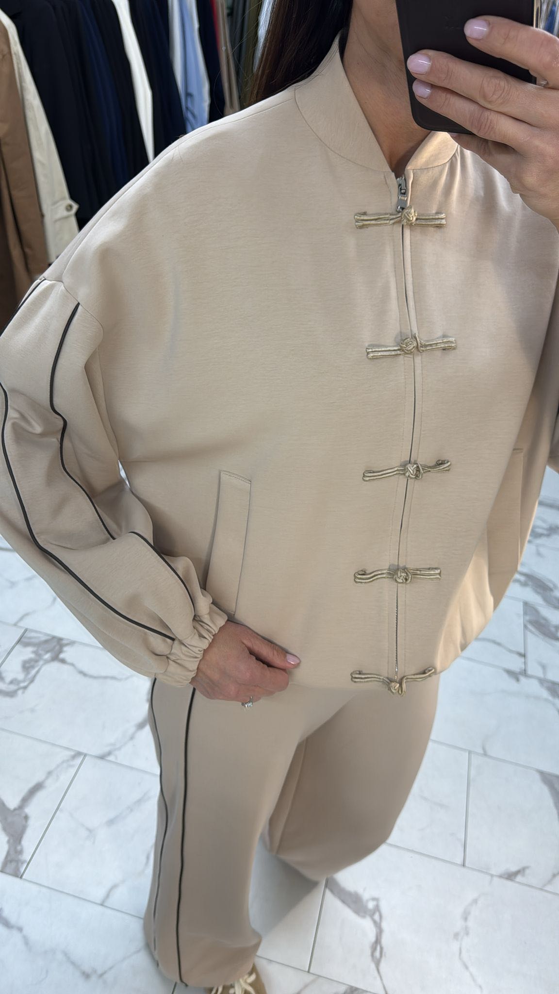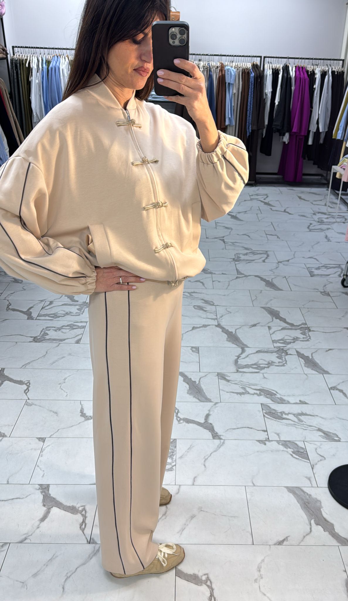 Completo composto da pantalone palazzo con elastico in vita e bomber chiusura zip