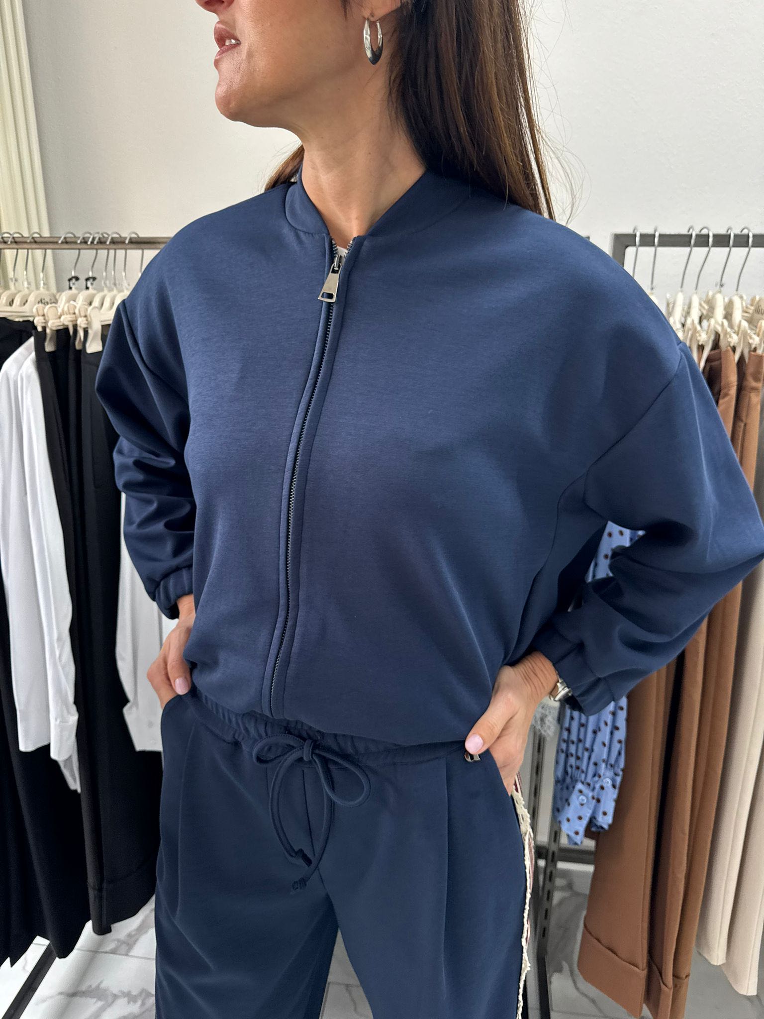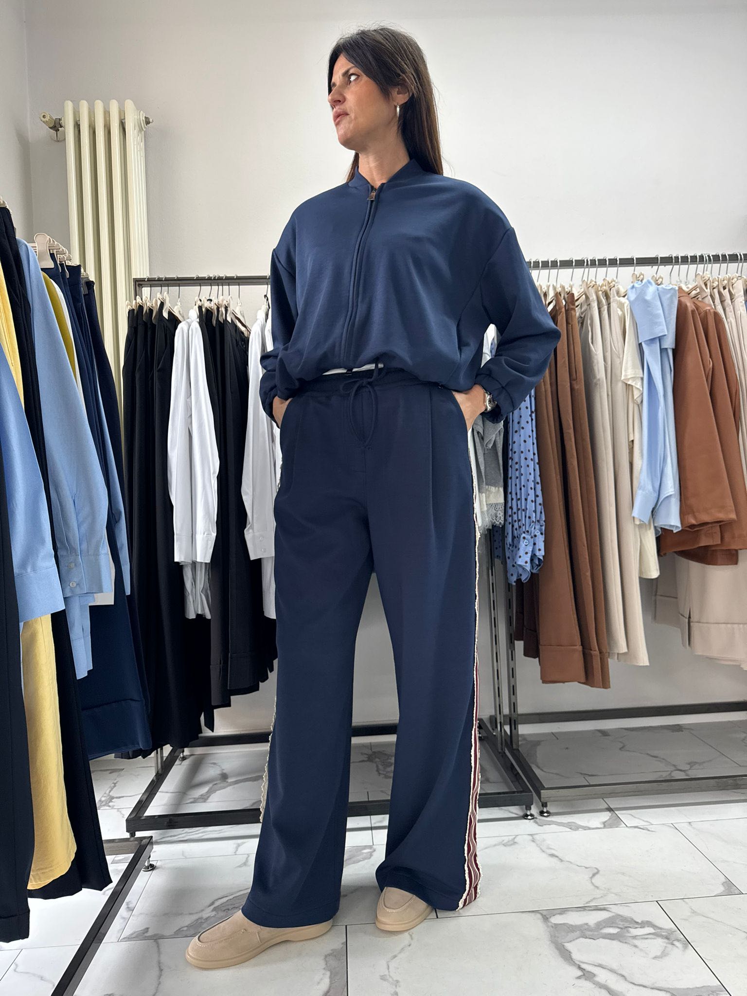 Completo composto da bomberino chiusura zip e pantalone palazzo con elastico in vita.