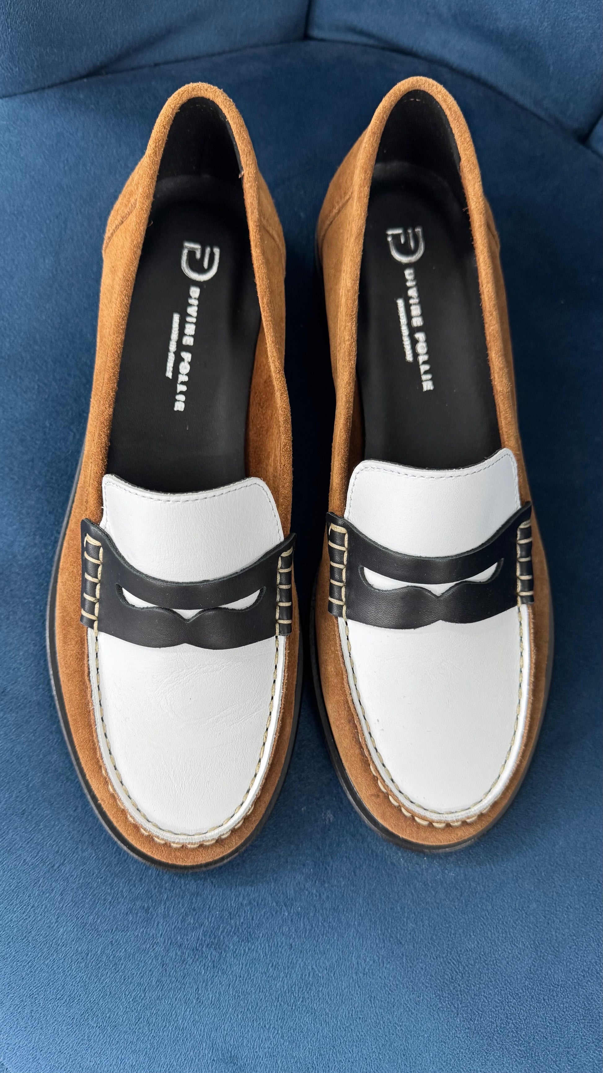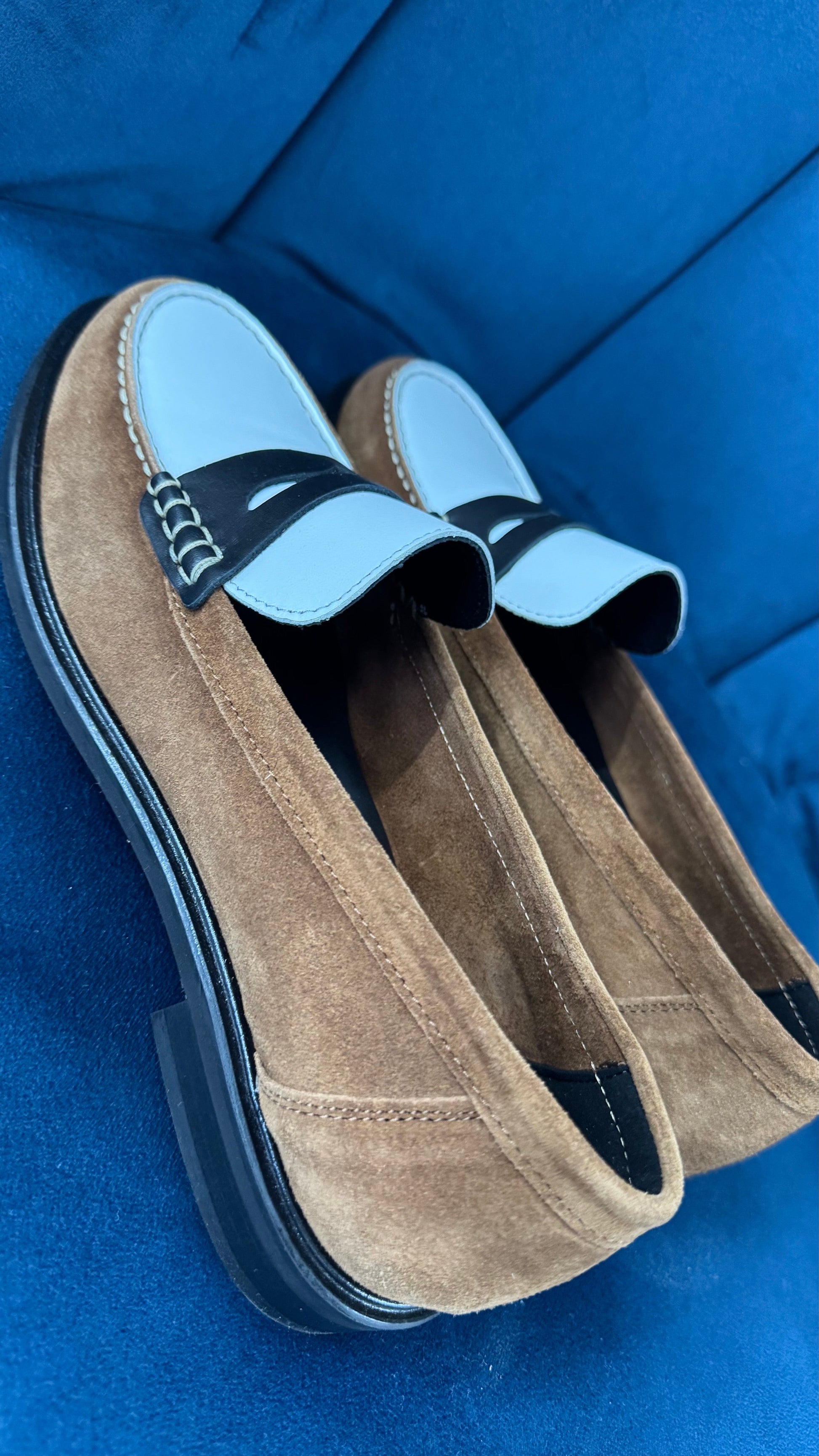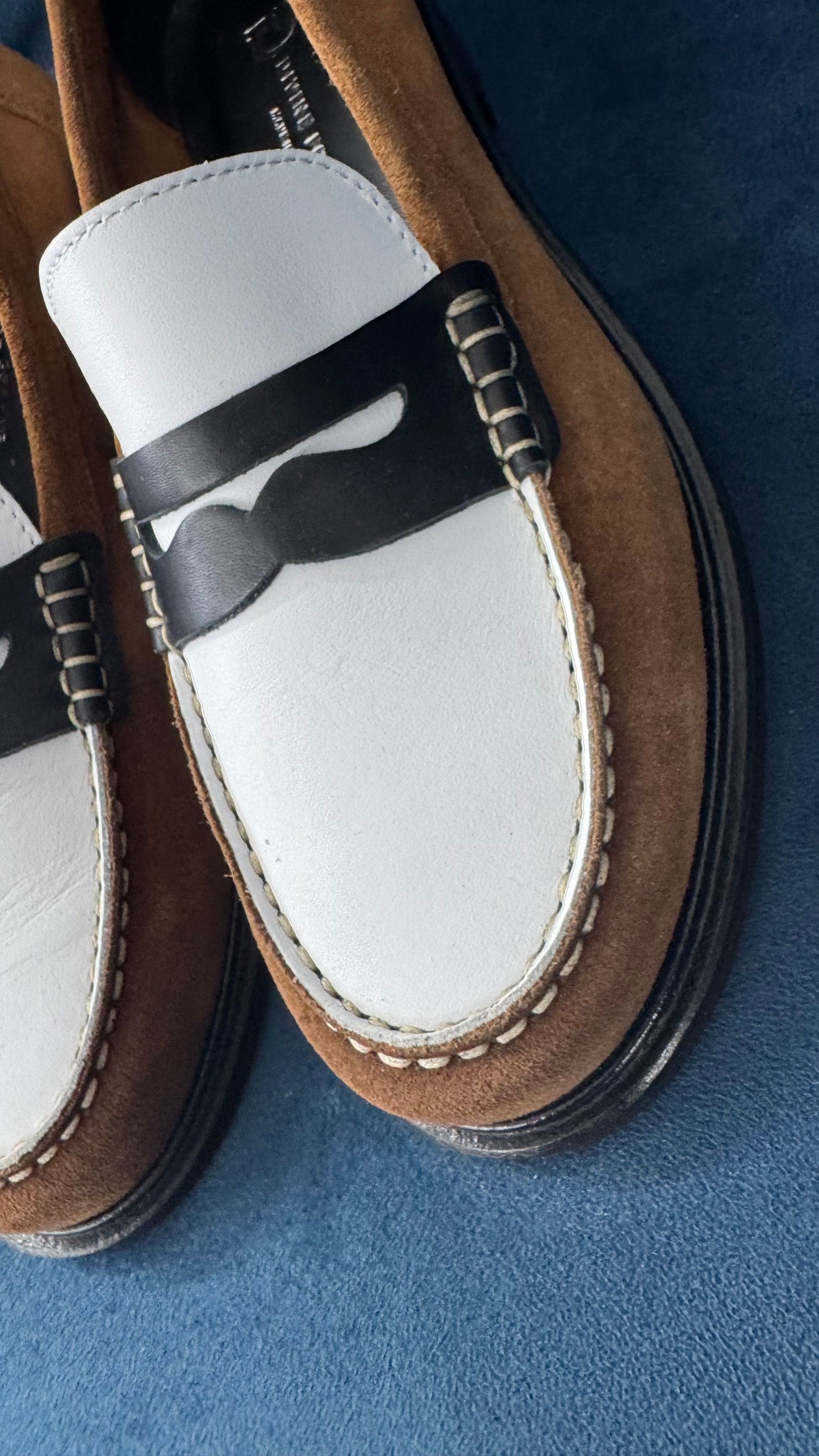 MOCASSINO IN CAMOSCIO E PELLE CUOIO BIANCO E NERO