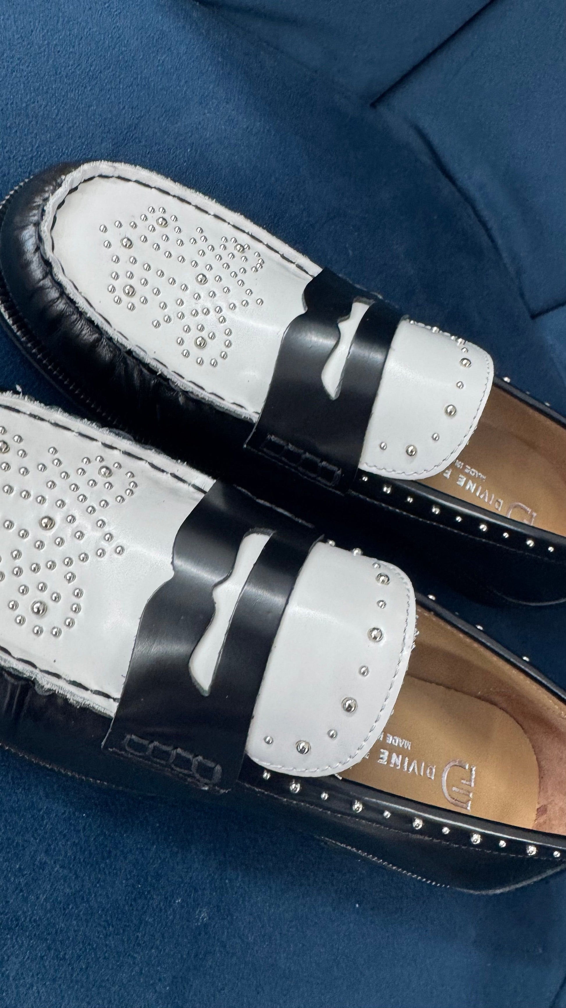 MOCASSINO VITELLO BORCHIE BIANCO E NERO