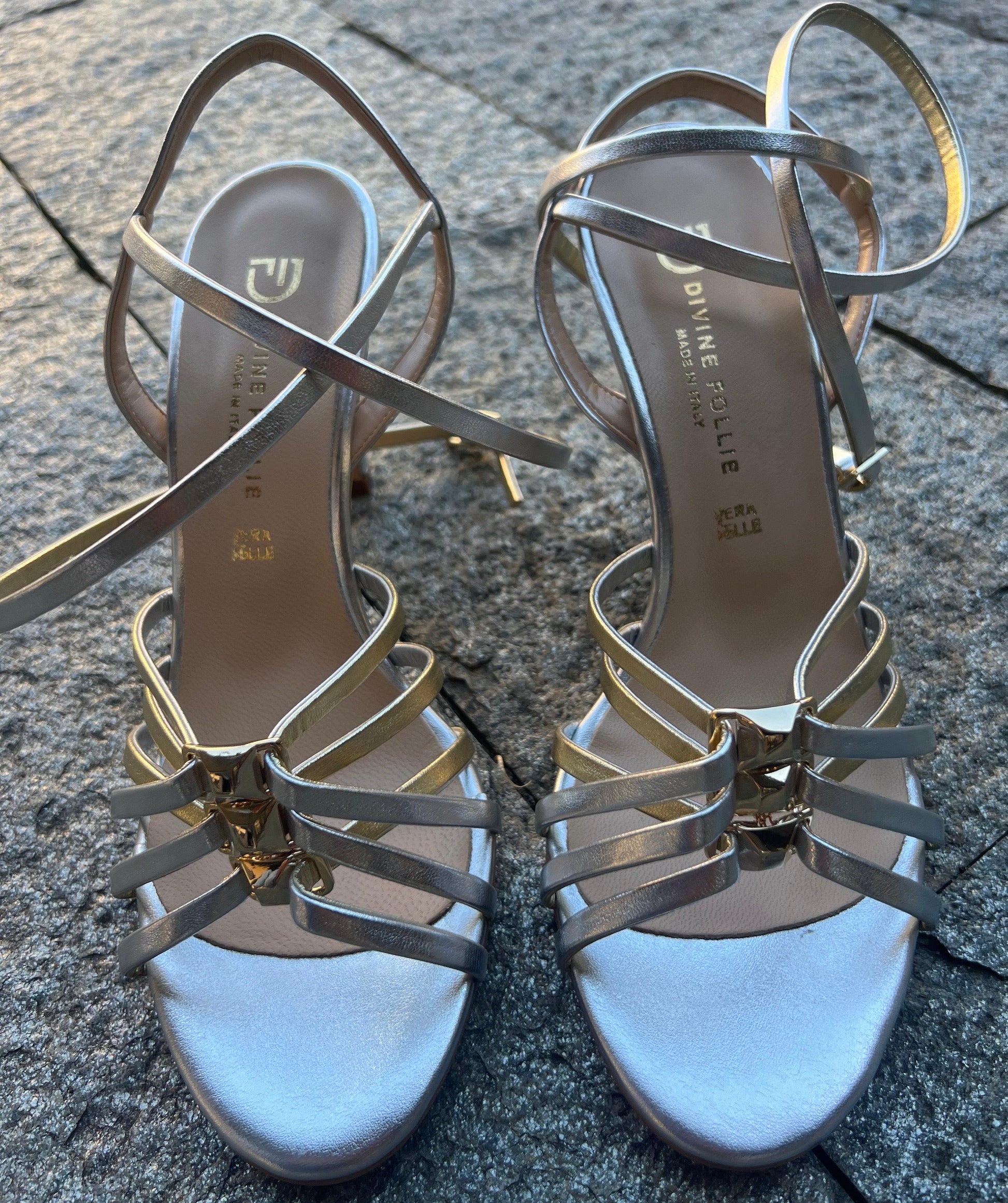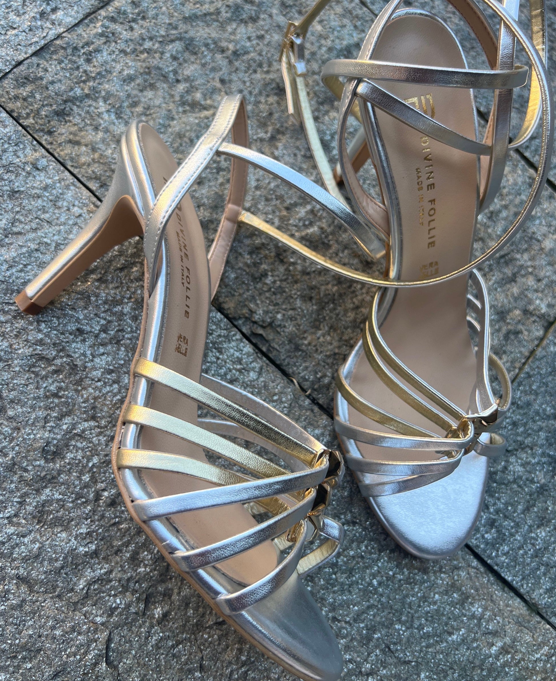 DIVINE FOLLIE SANDALO TACCO ORO ARGENTO