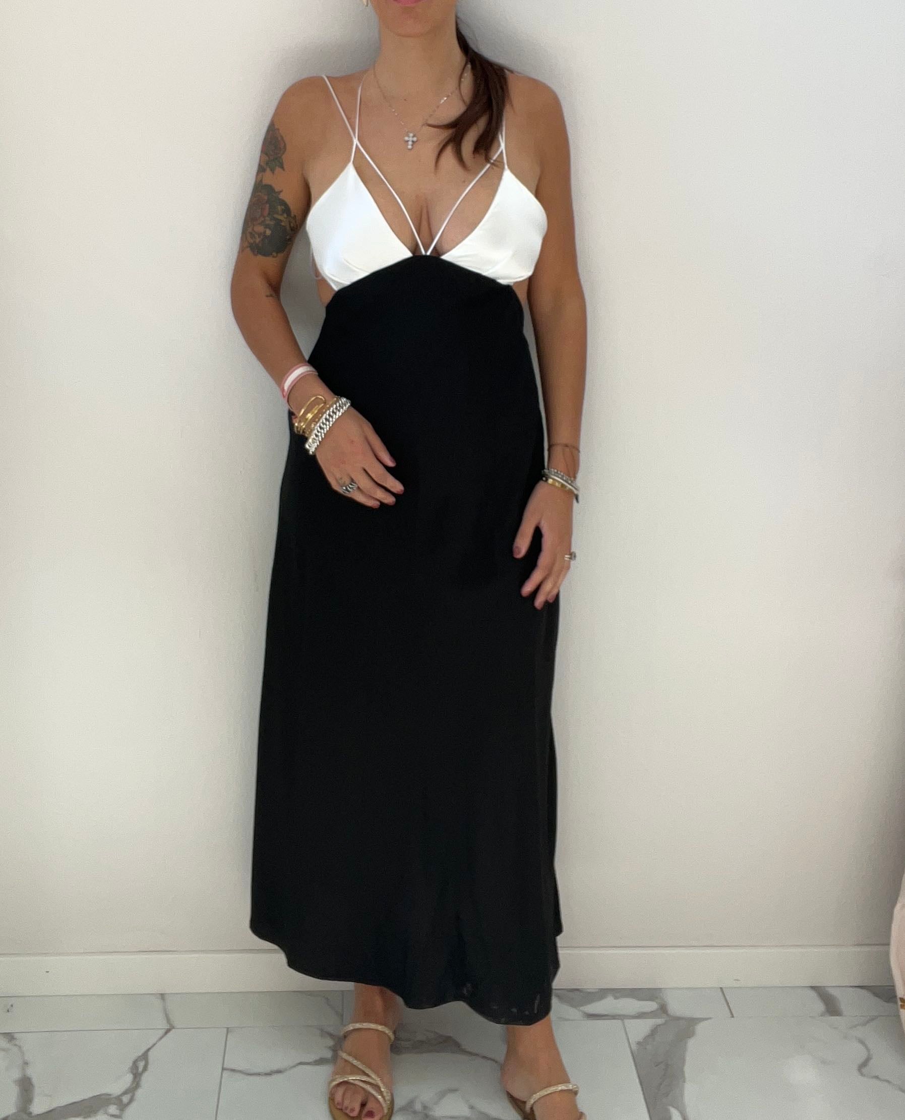 DIXIE ABITO LUNGO BIANCO E NERO SARA