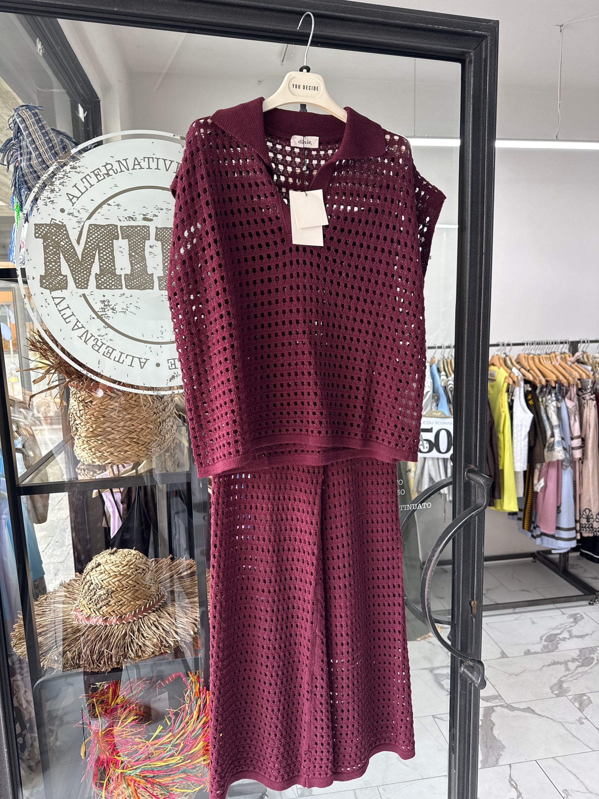 DIXIE COMPLETO IN MAGLIA TRAFORATO BORDEAUX