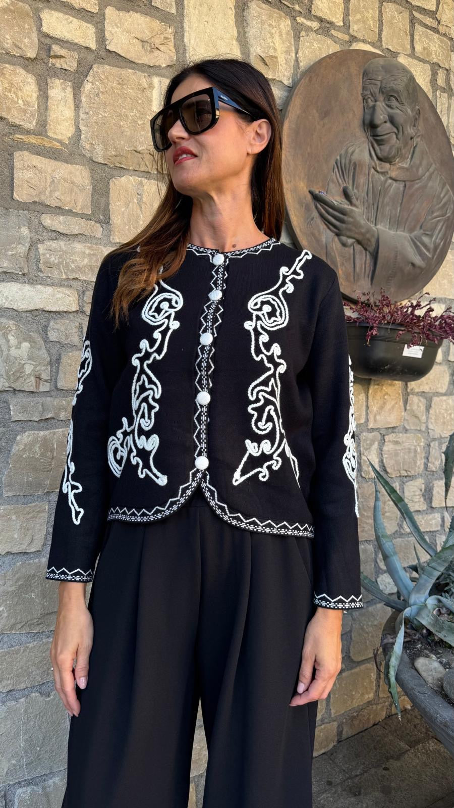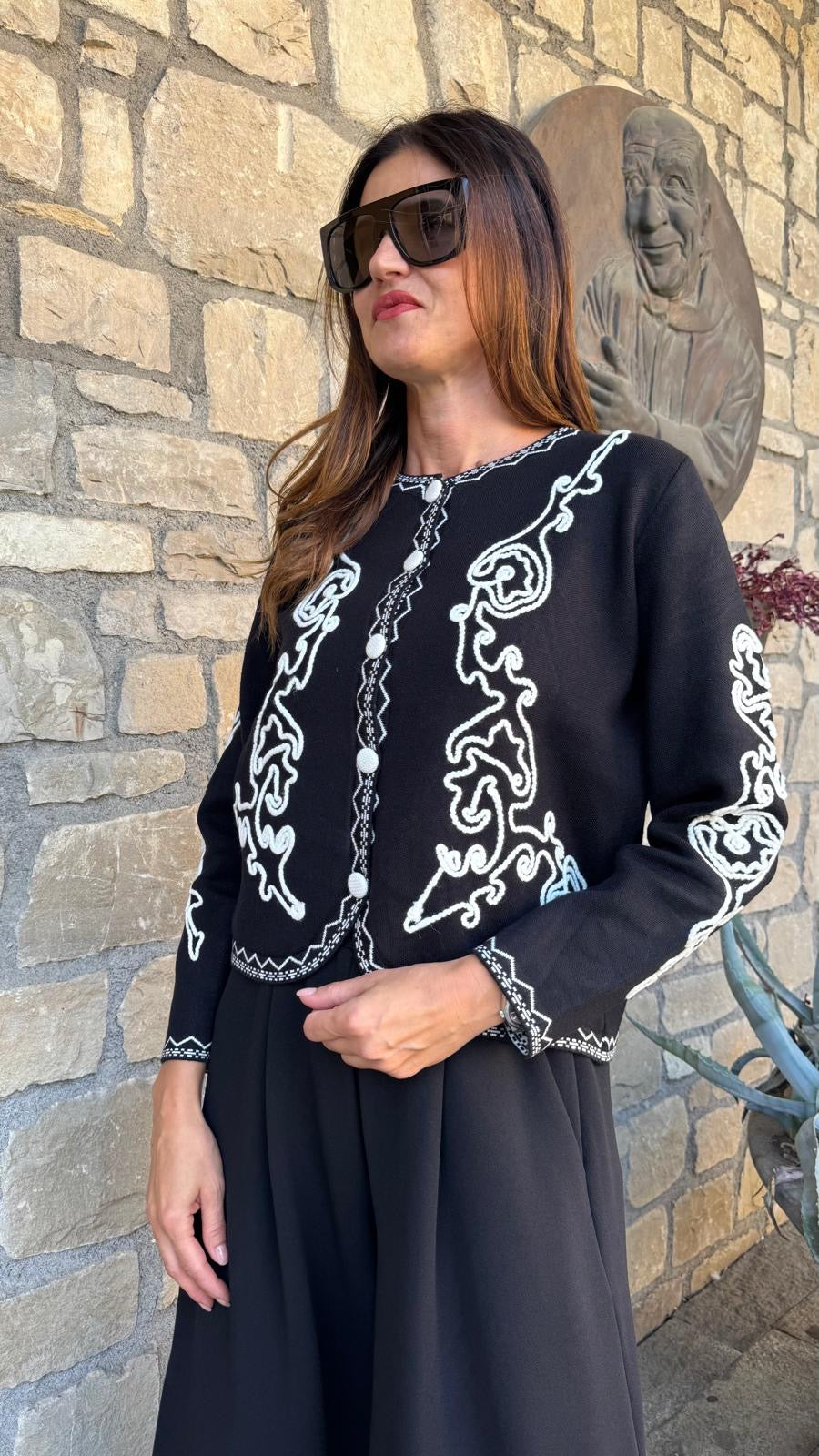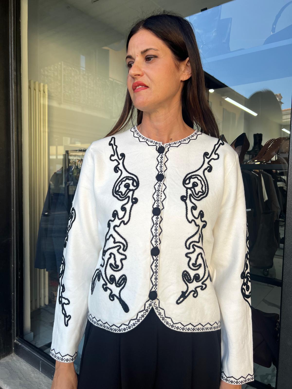 GIACCA IN MAGLIA RICAMATA bianca/nera/grigia/cioccolato