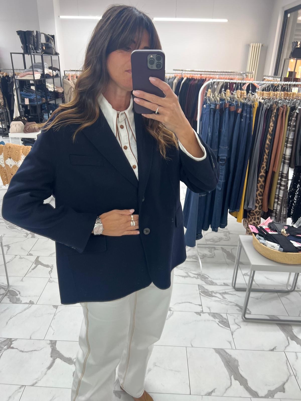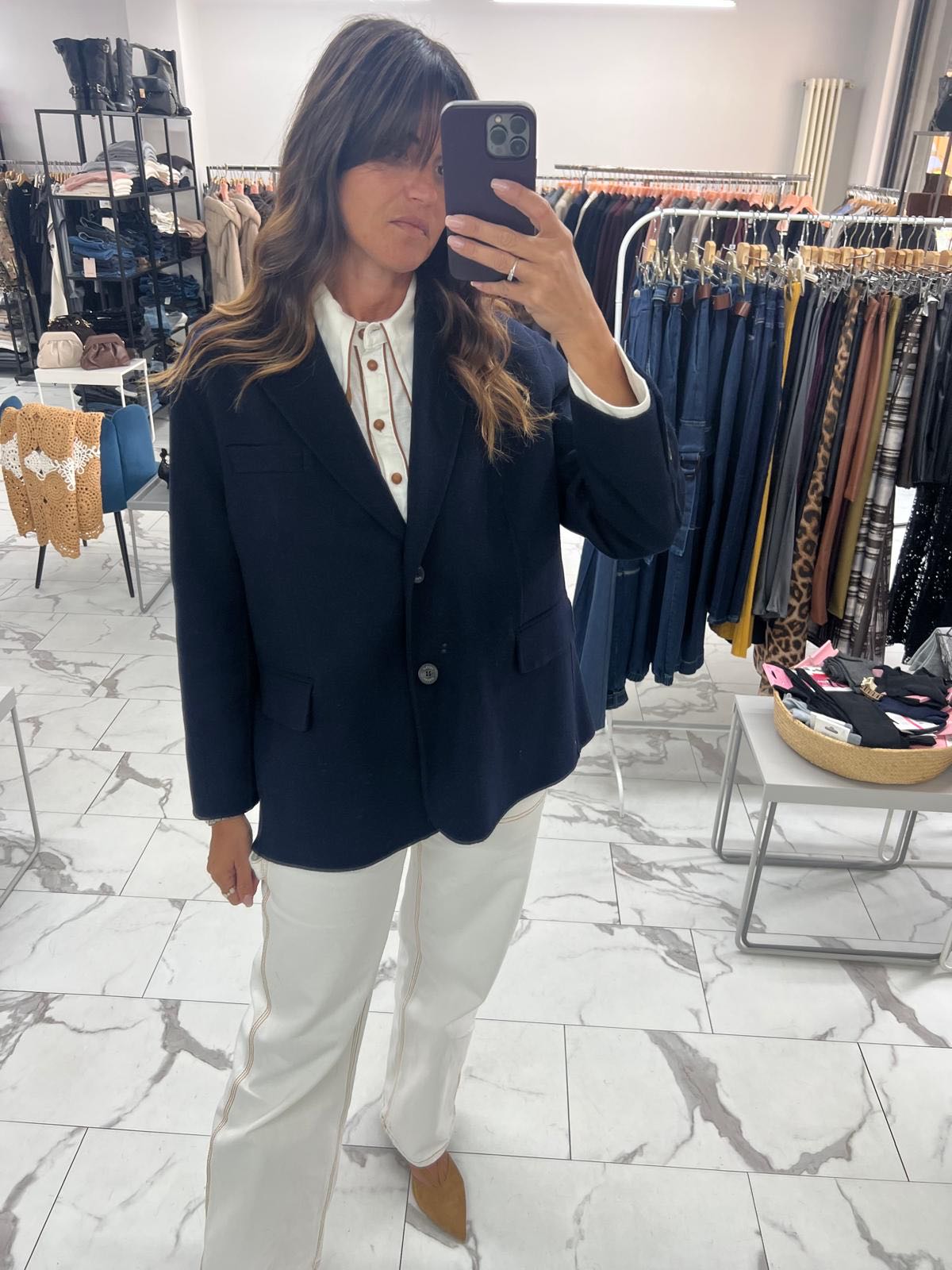 questa giacca over in panno è realizzata a mano per garantire qualità e cura nei dettagli. Il taglio morbido e la silhouette ampia la rendono perfetta per sovrapposizioni di stile. Presenta una chiusura a due bottoni, tasche frontali funzionali e un taschino discreto sul petto. Calda e versatile, è un capo essenziale per affrontare la stagione con classe e personalità.