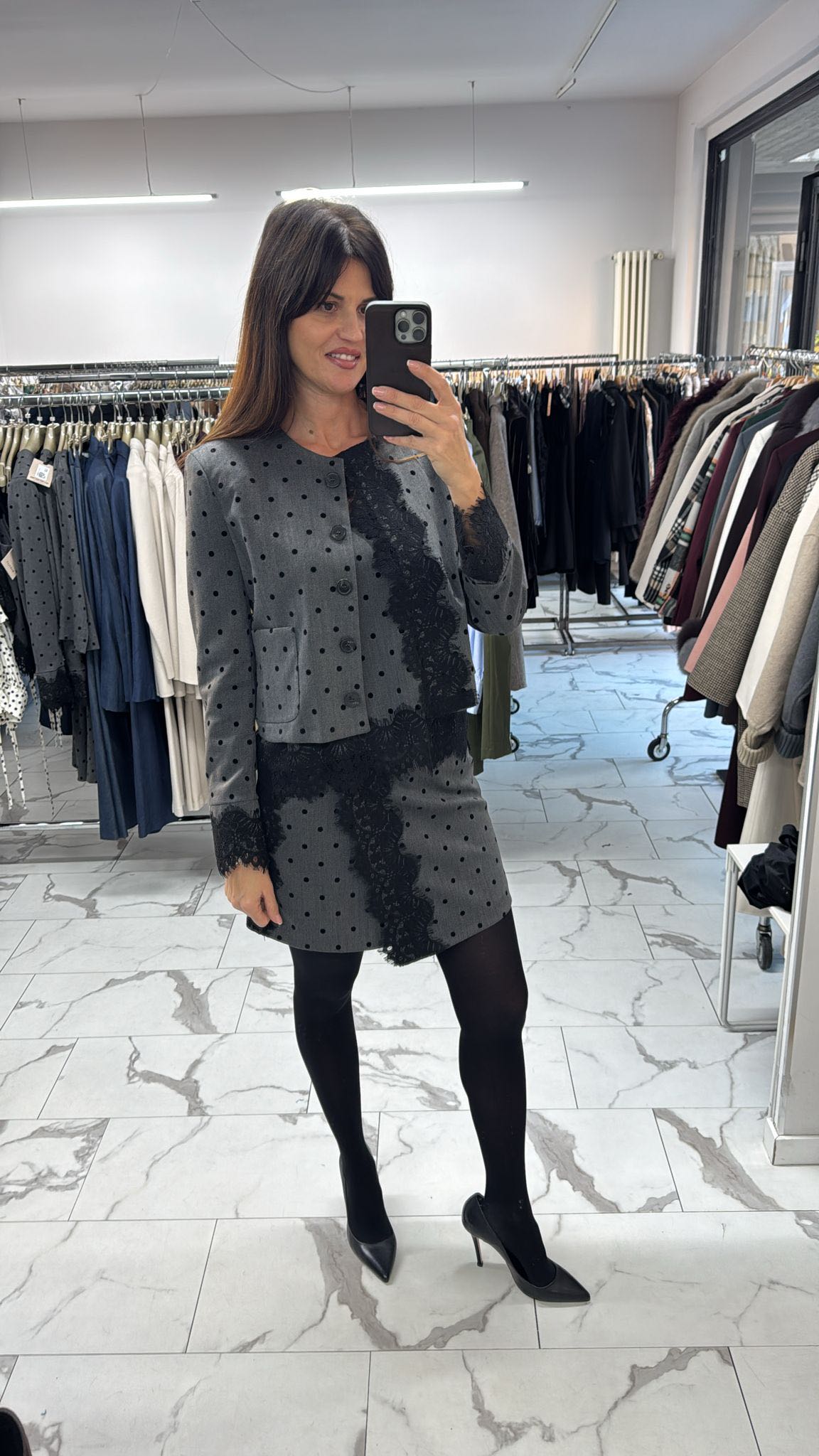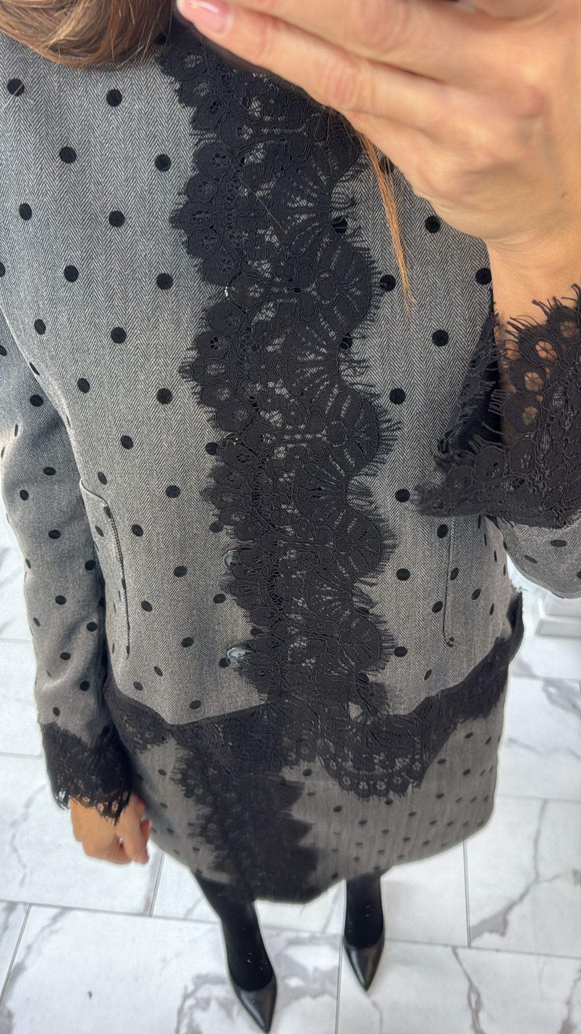 Giacca pois con dettaglio pizzo chiusura con bottoni frontali nascosti