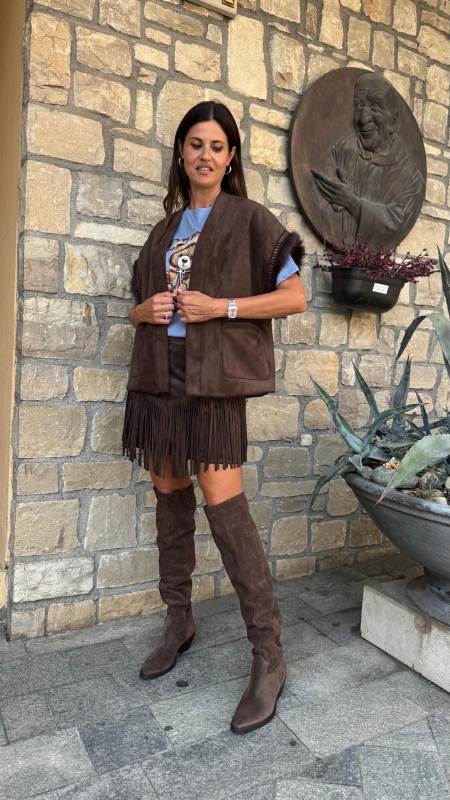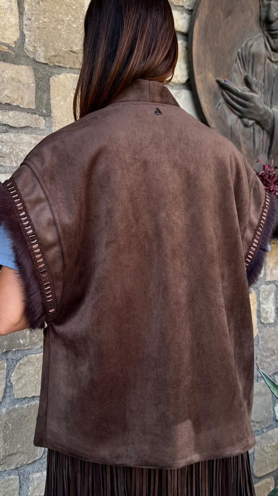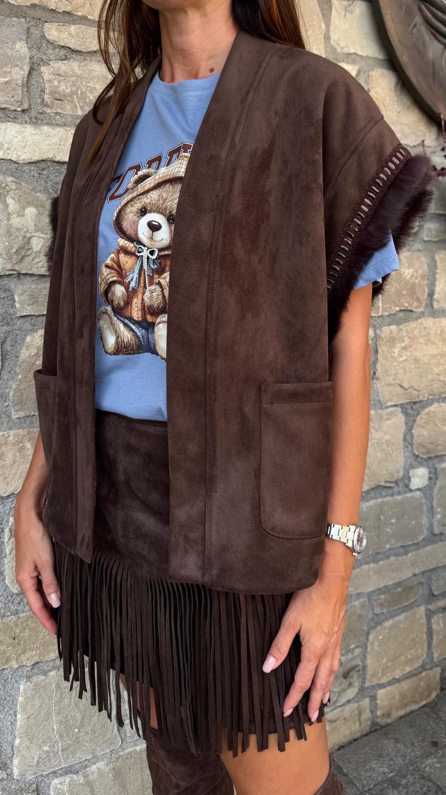 GILET EFFETTO CAMOSCIO CIOCCOLATO