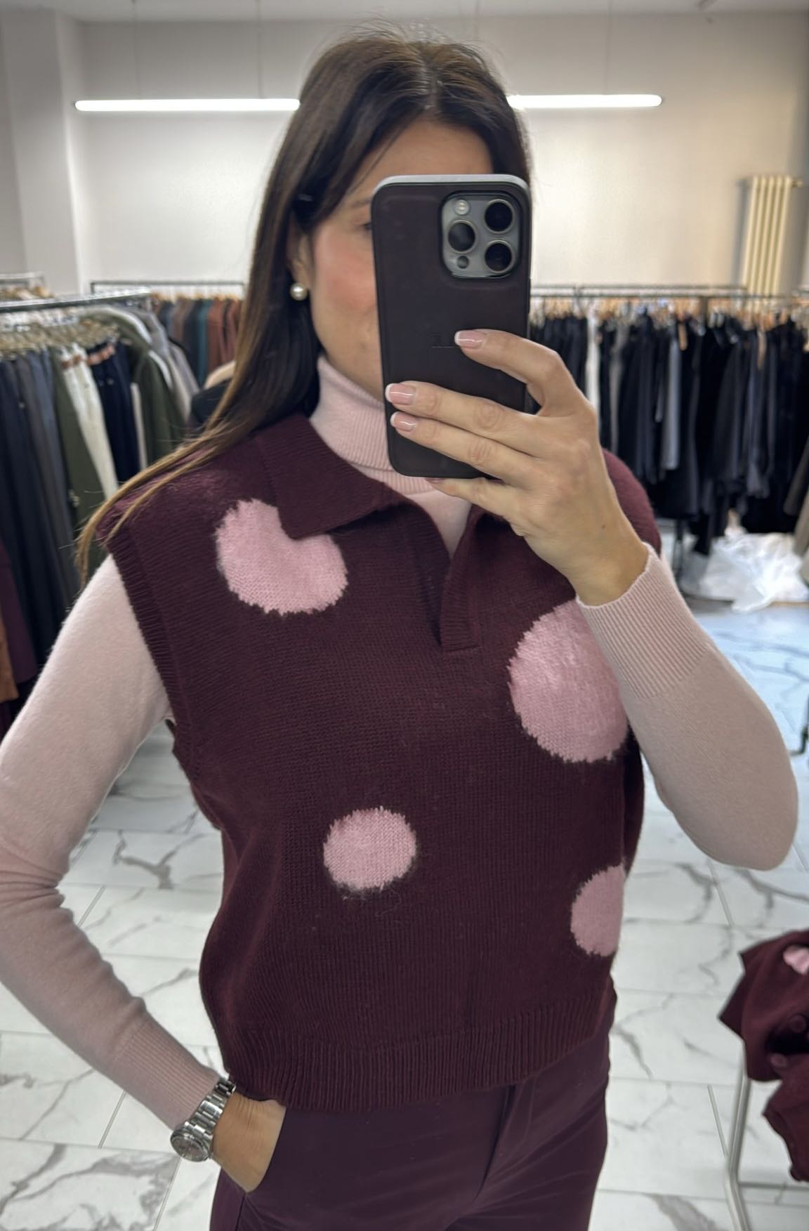 GILET POLO POIS BORDEAUX ROSA