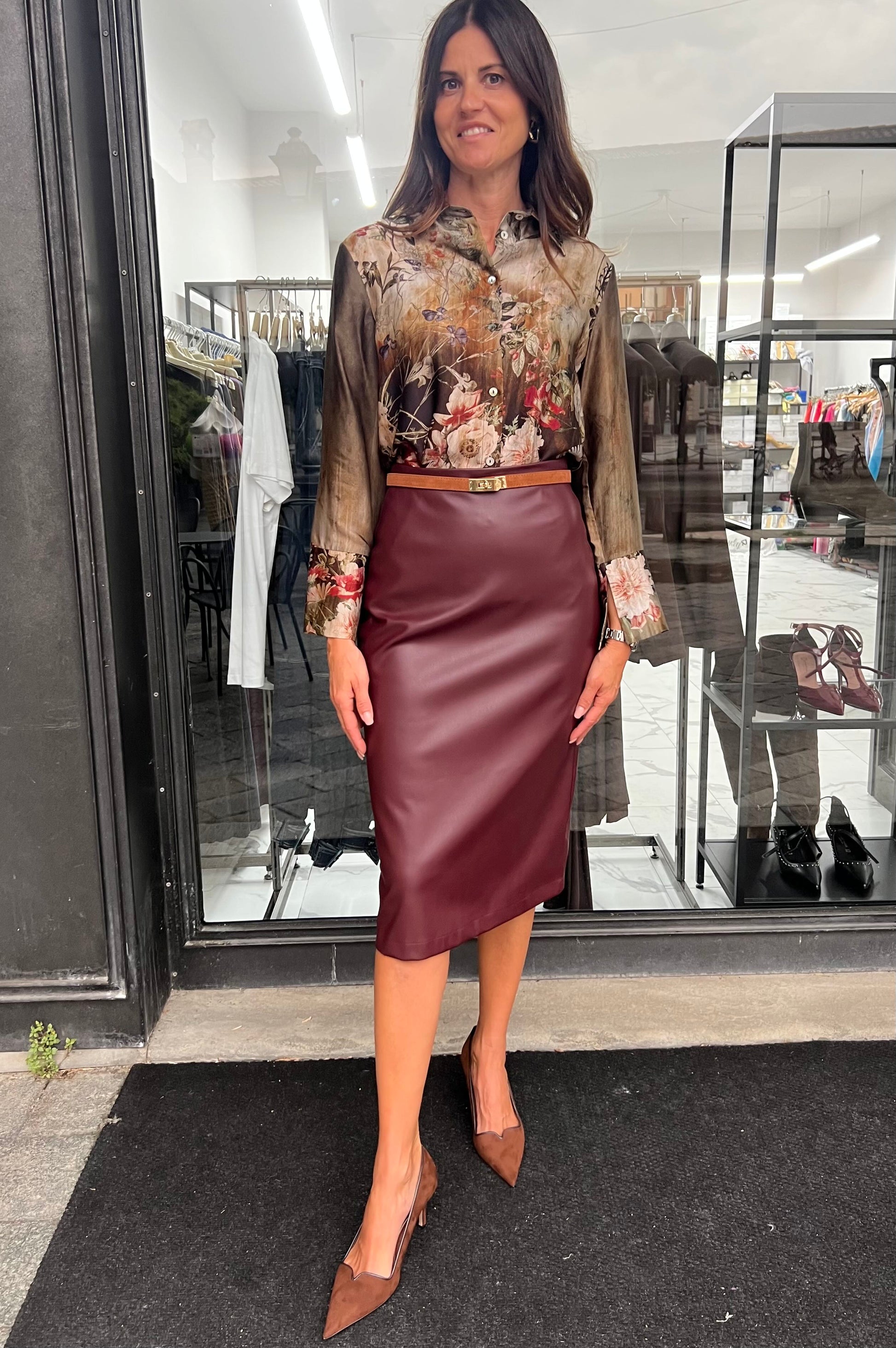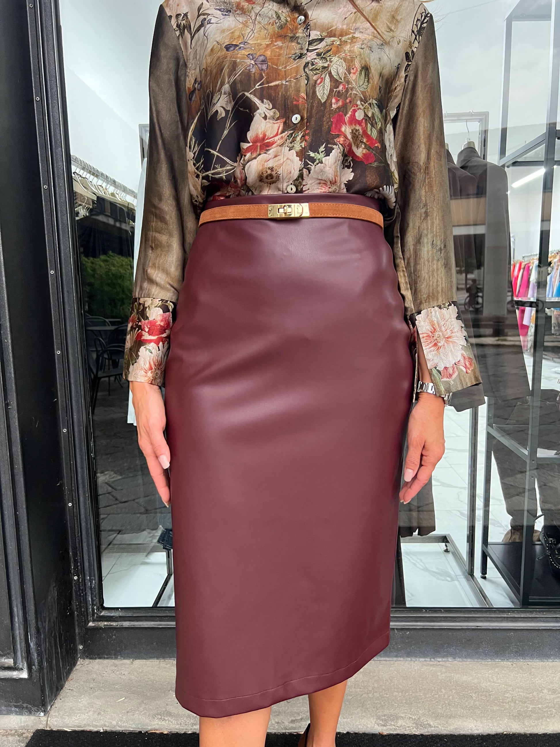 Gonna longuette in ecopelle