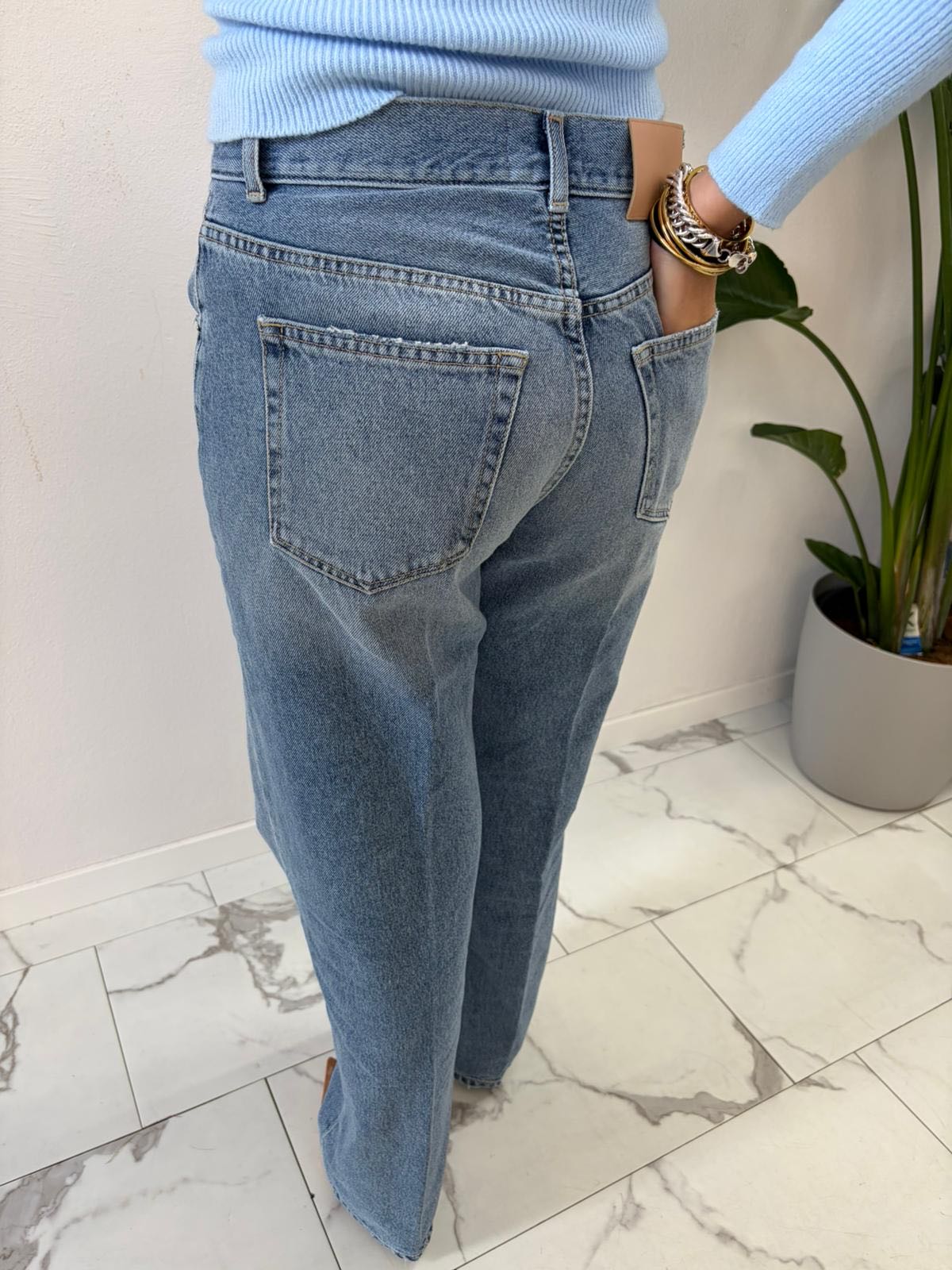 Chiusura frontale con bottoni in metallo.Denim chiaro.