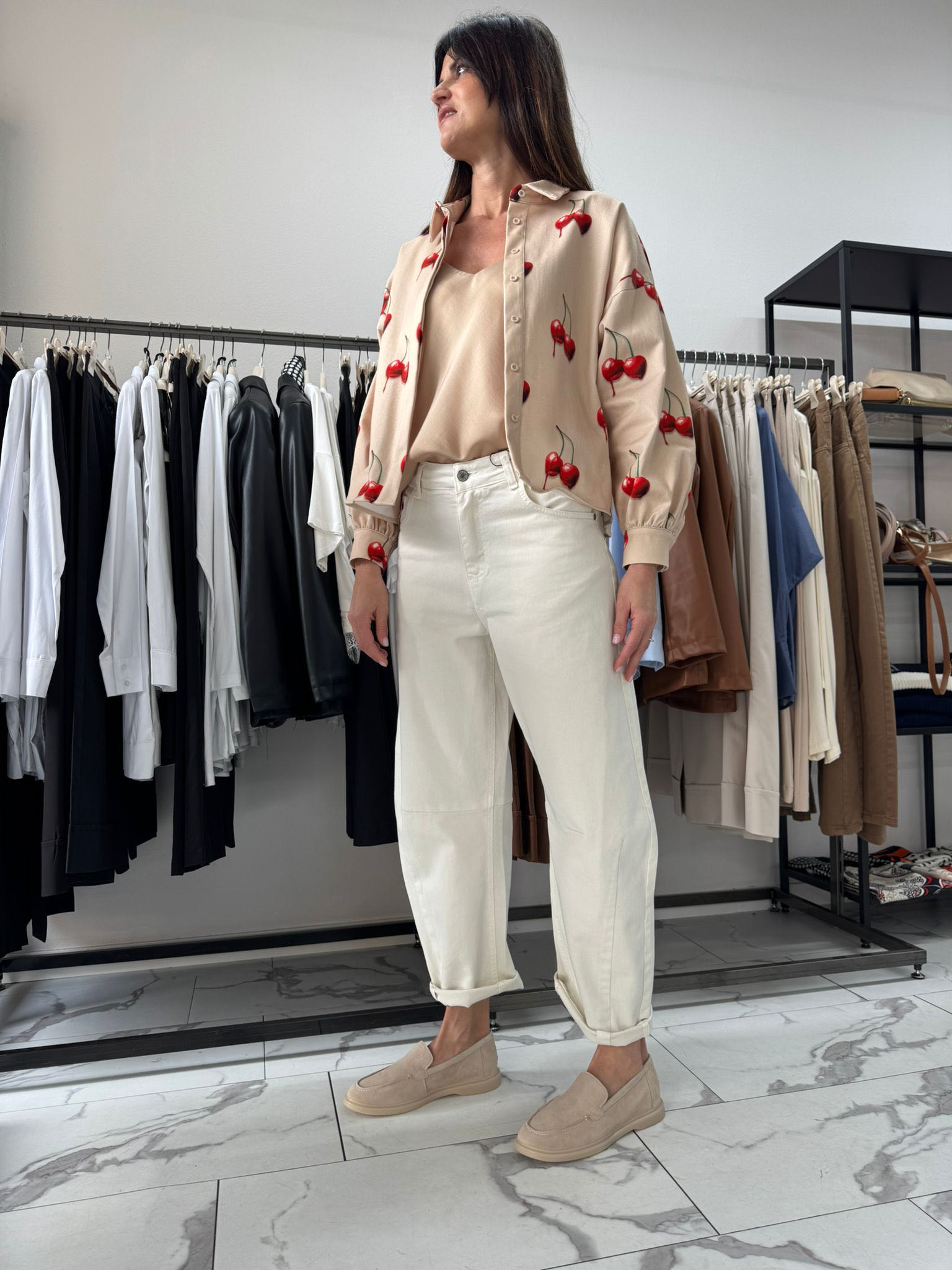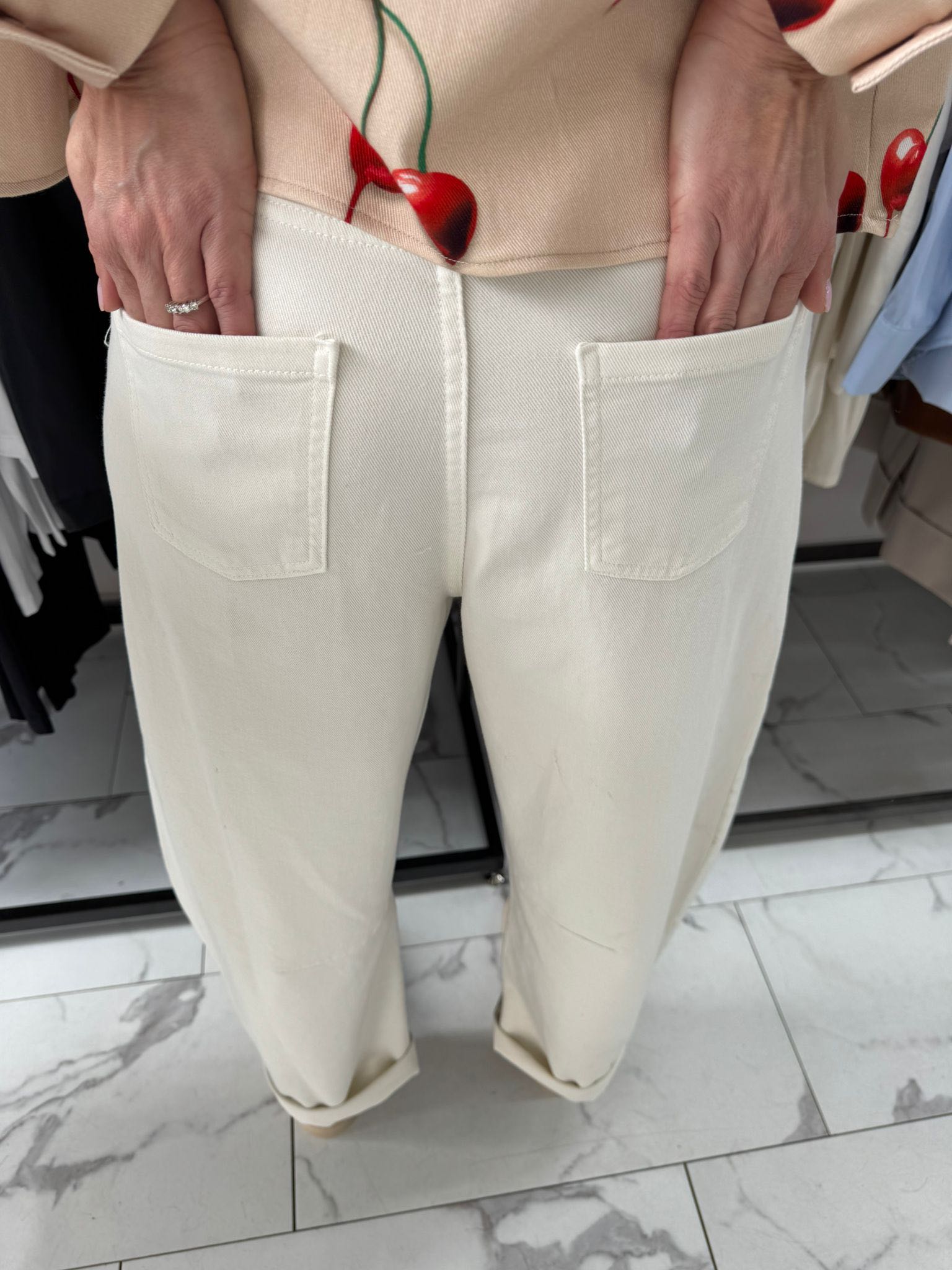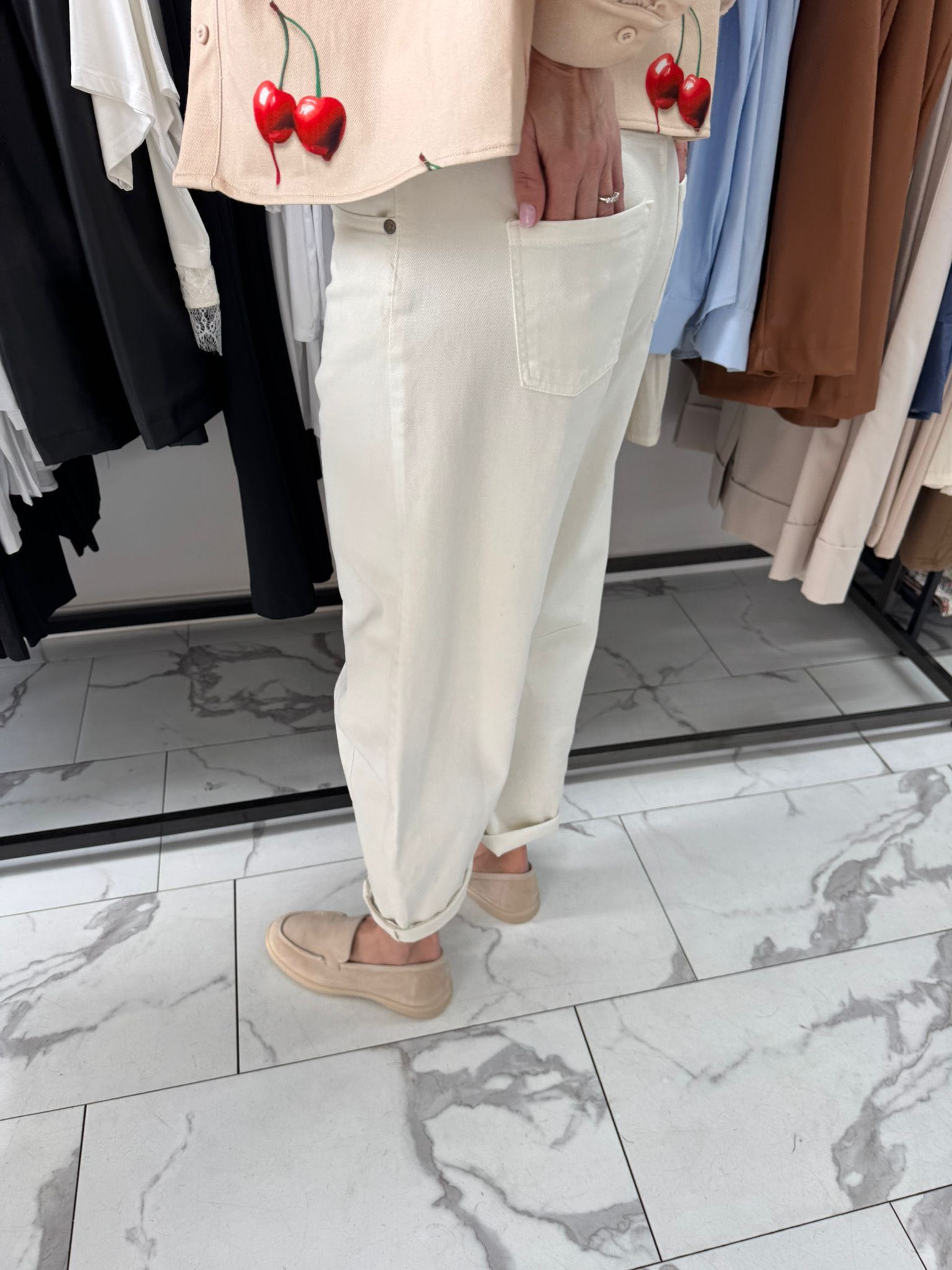 Jeans barrel con gamba curva.