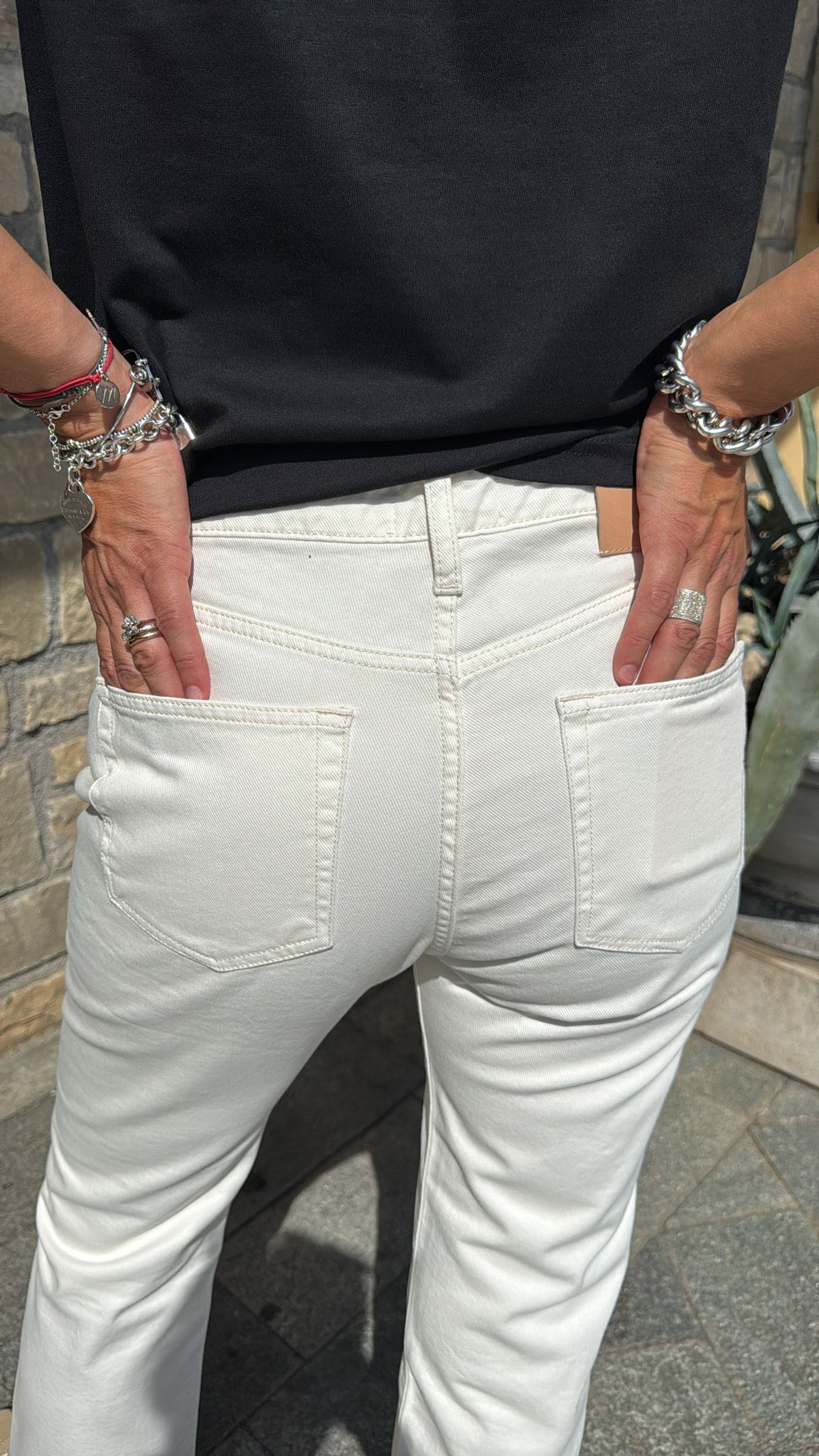 Chiusura frontale con bottoni gioiello e zip nascosta.