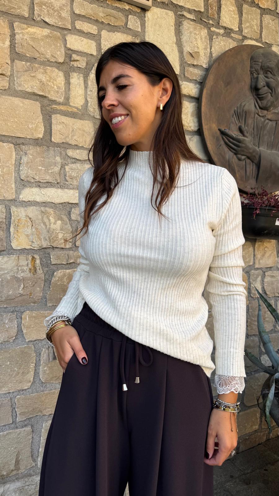 MAGLIA A COSTINE PIZZO panna/blu/cioccolato/nera/grigia