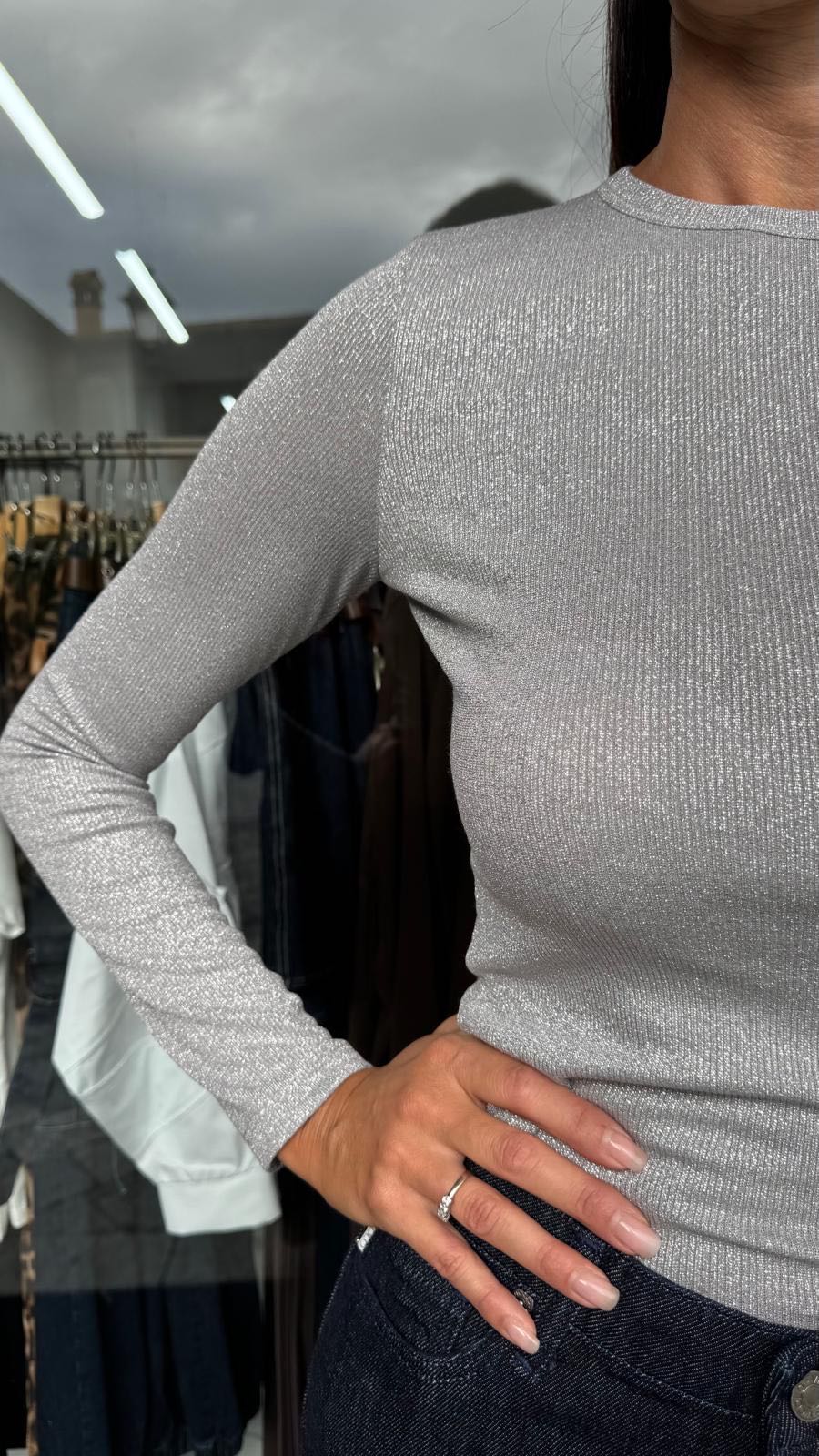 MAGLIA GIROCOLLO LUREX ARGENTO