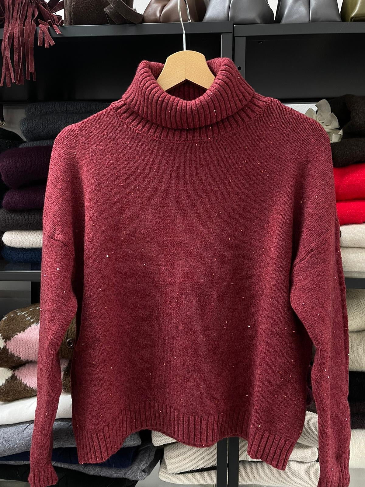 MAGLIA OVER COLLO ALTO MICROPAILLETES BORDEAUX