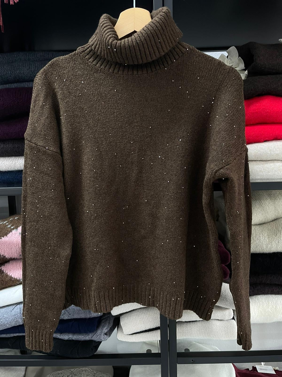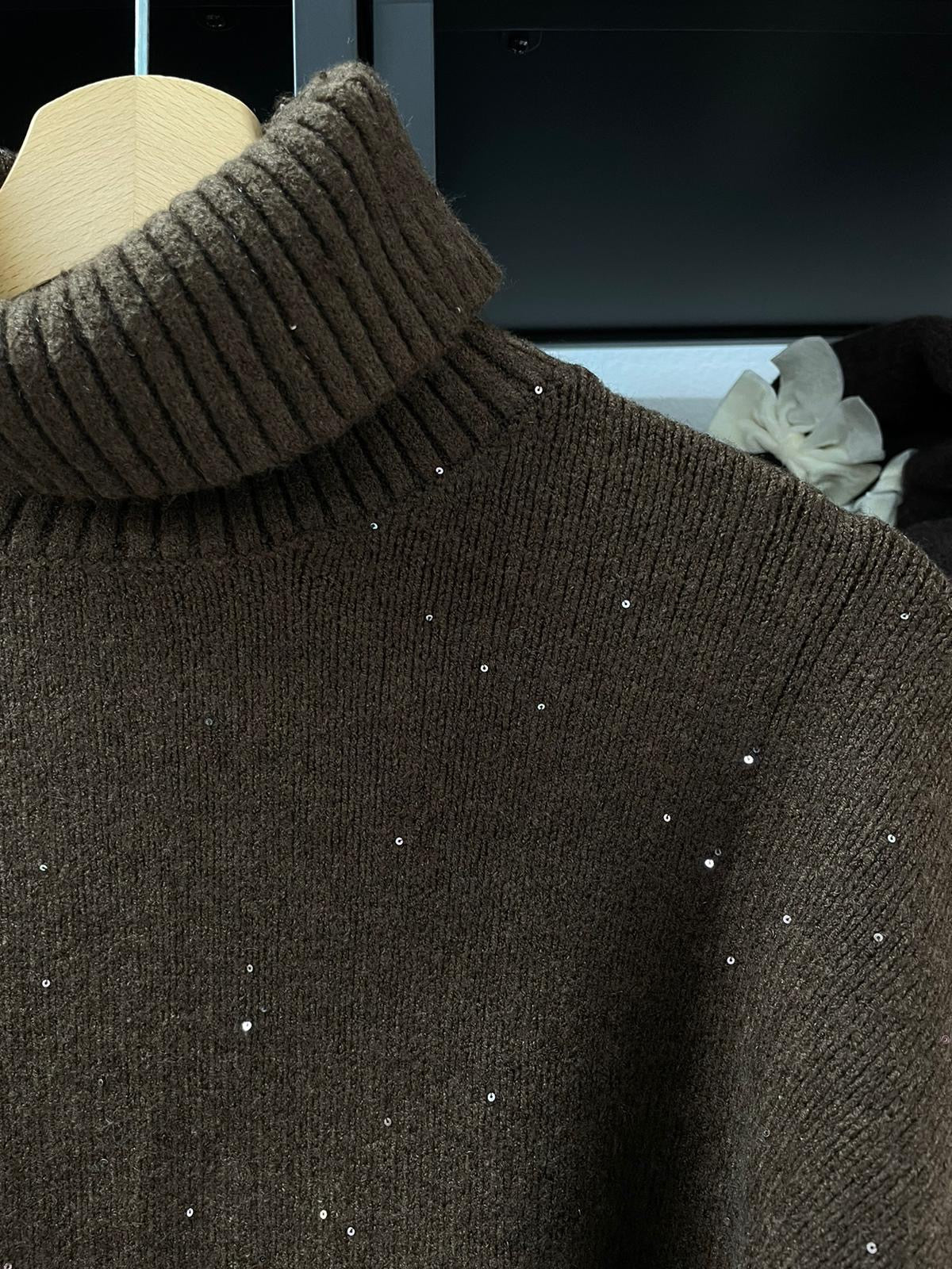 MAGLIA OVER COLLO ALTO MICROPAILLETES MORO