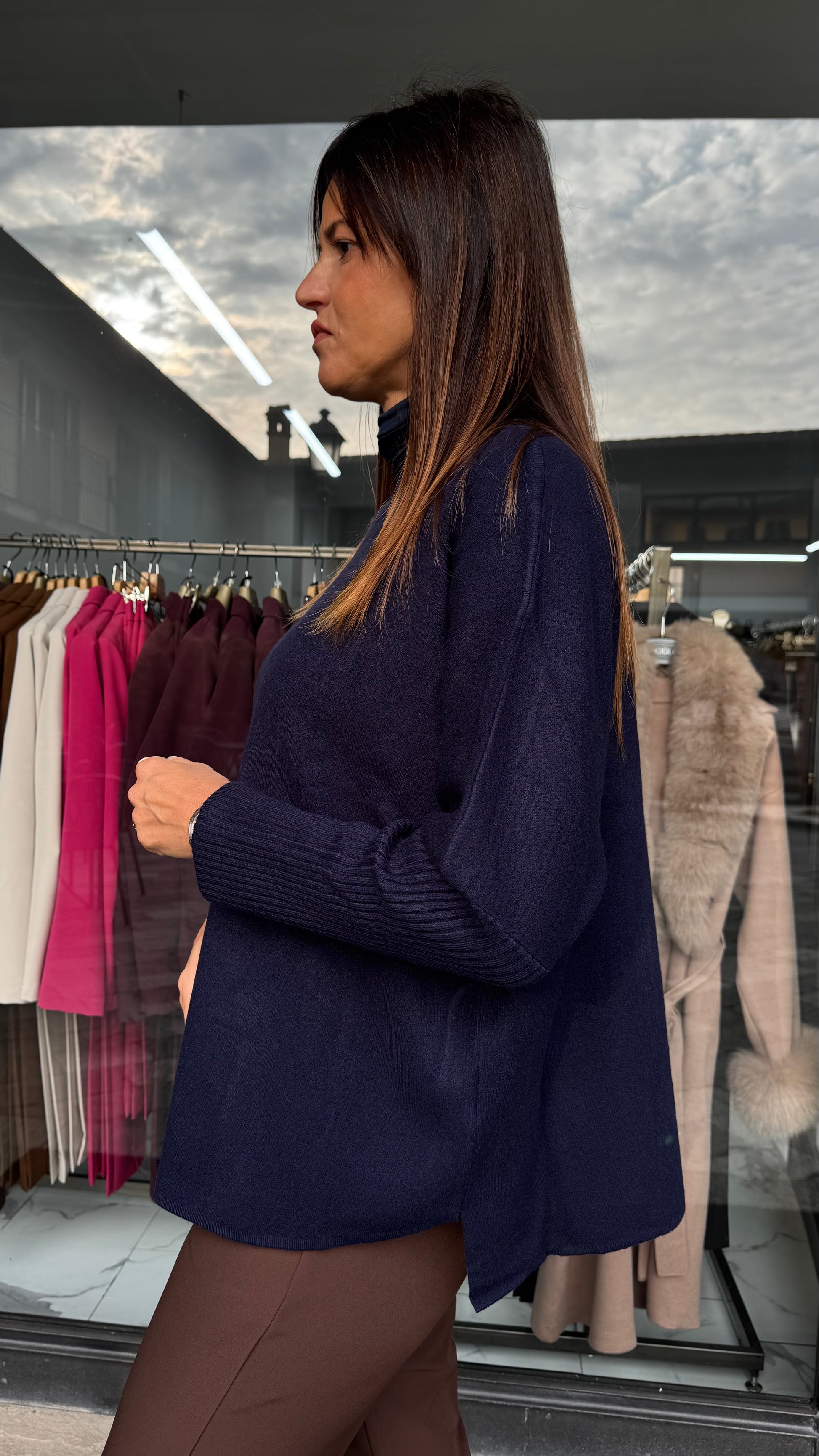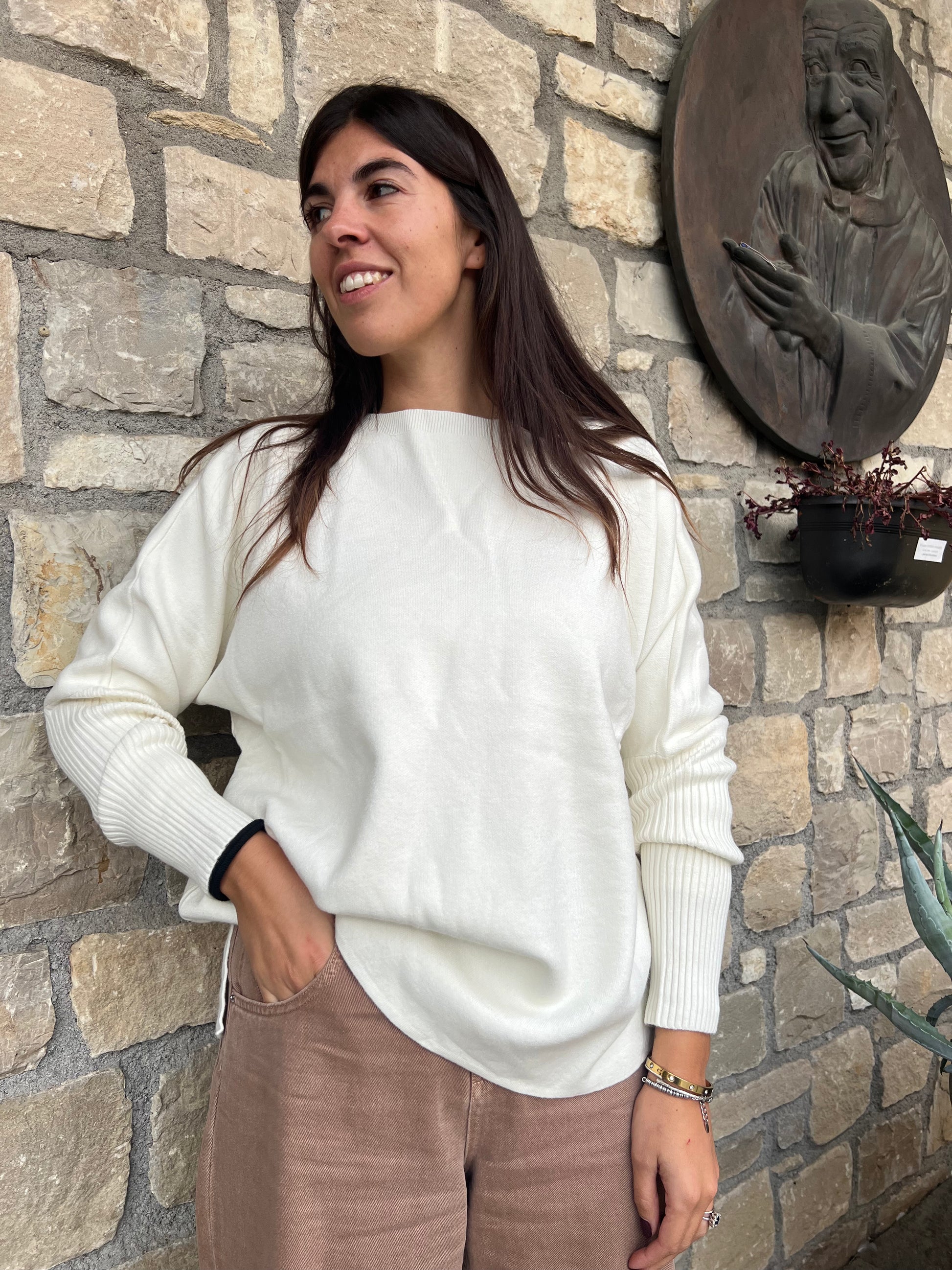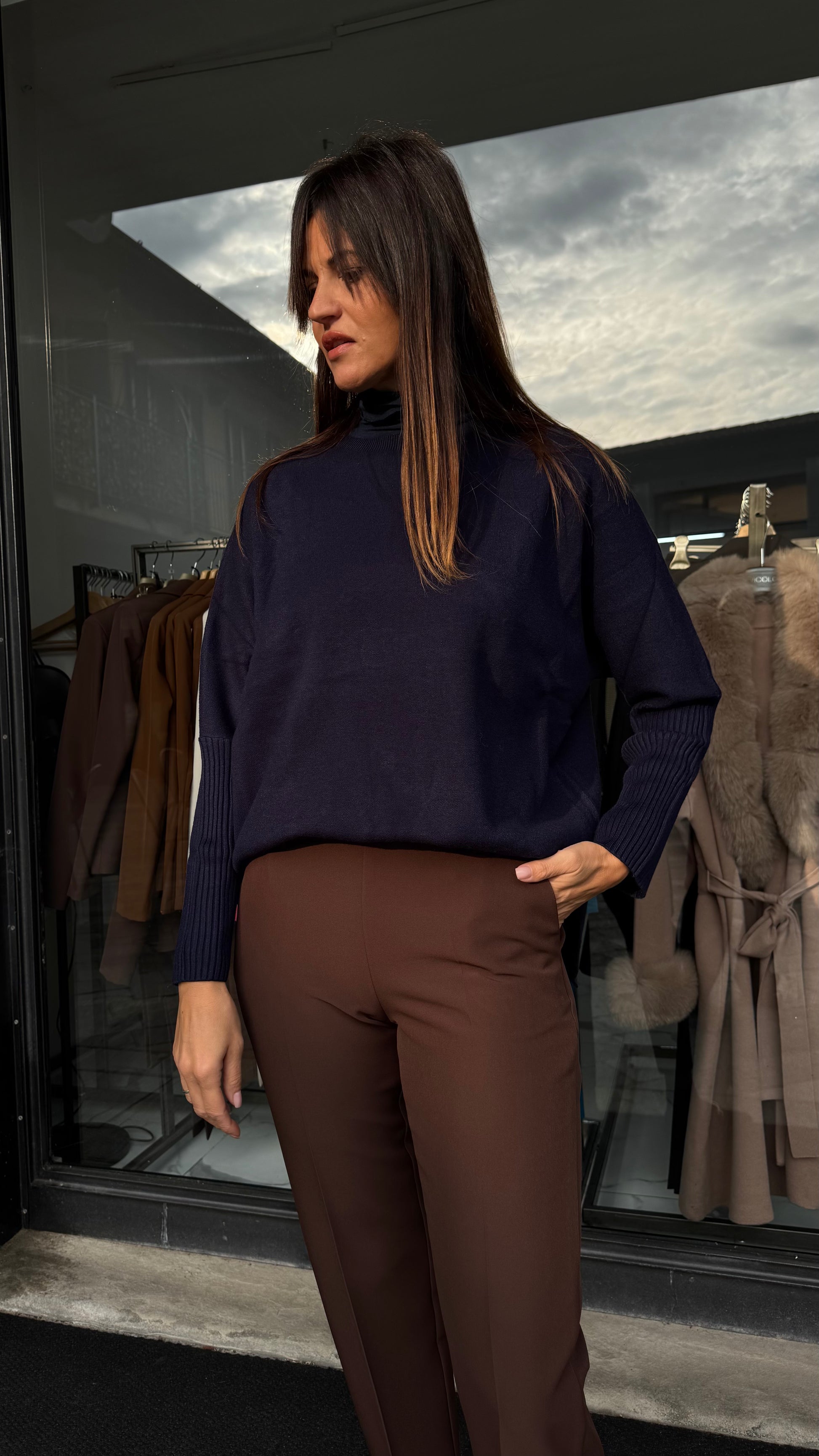 MAGLIA SCATOLETTA MANICA A TUBO blu/panna/cioccolato/grigio/sabbia/nero