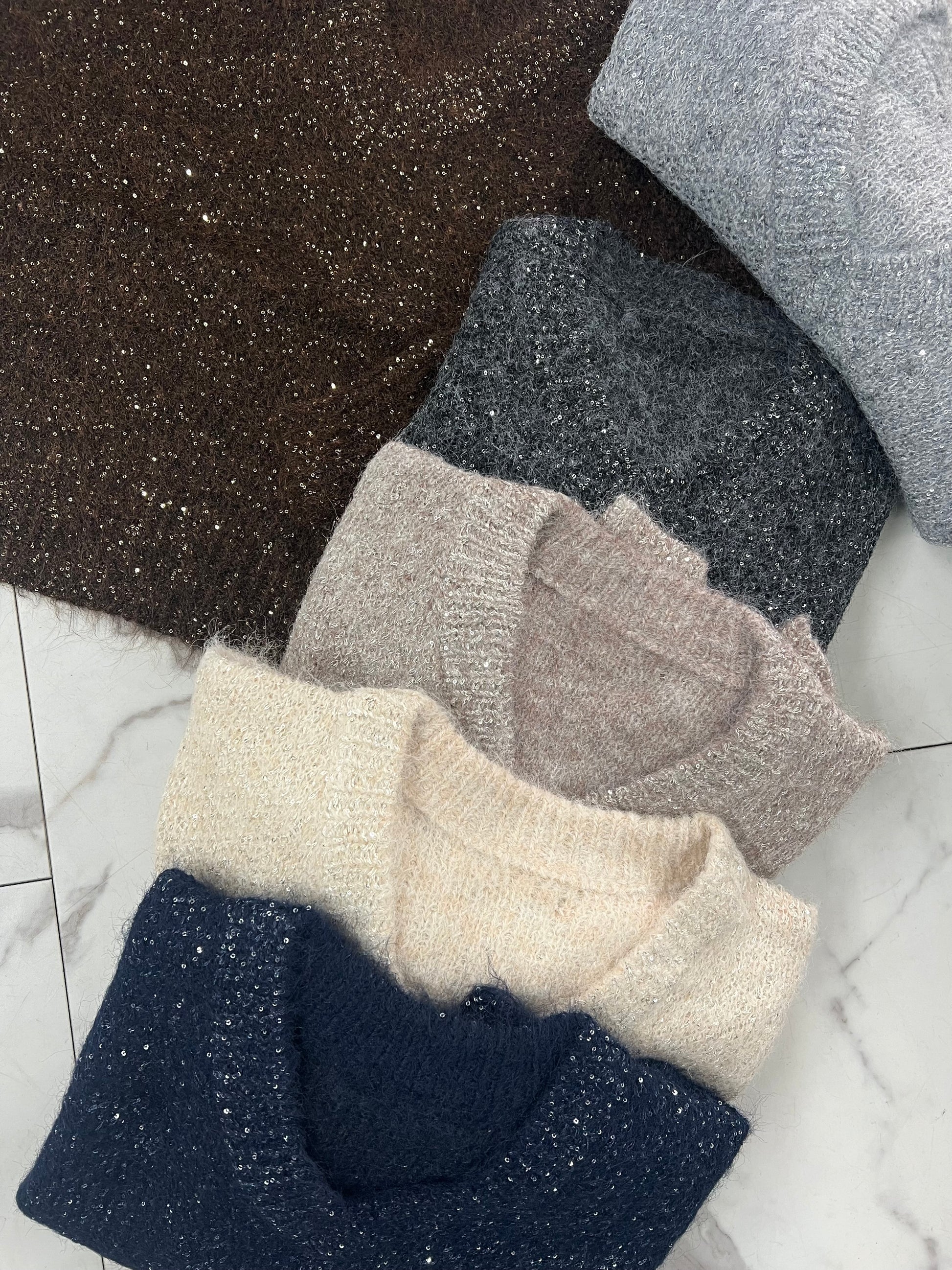 MAGLIONCINO MICRO PAILLETTES blu/sabbia/grigio chiaro/grigio scuro/cioccolato/panna