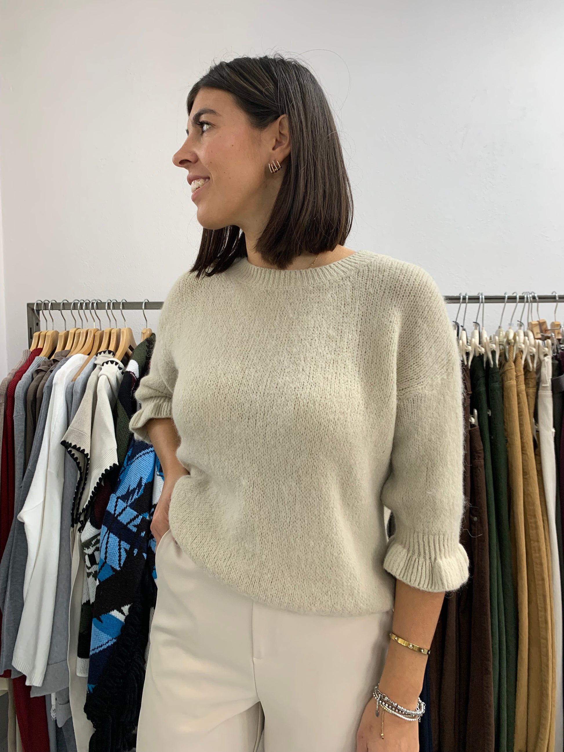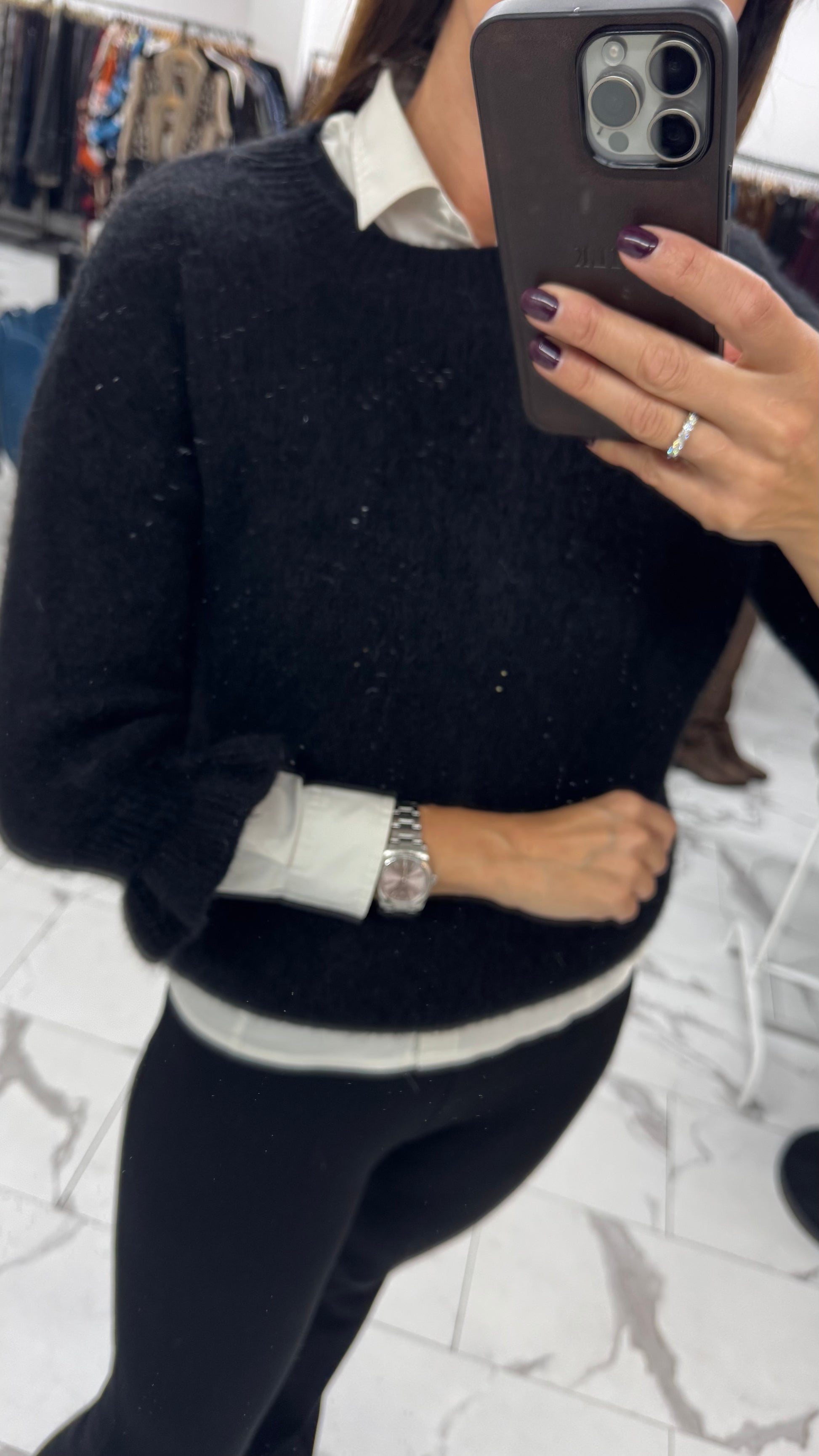 MAGLIONCINO MOHAIR MANICA ROUGE nero/cioccolato/panna/sabbia