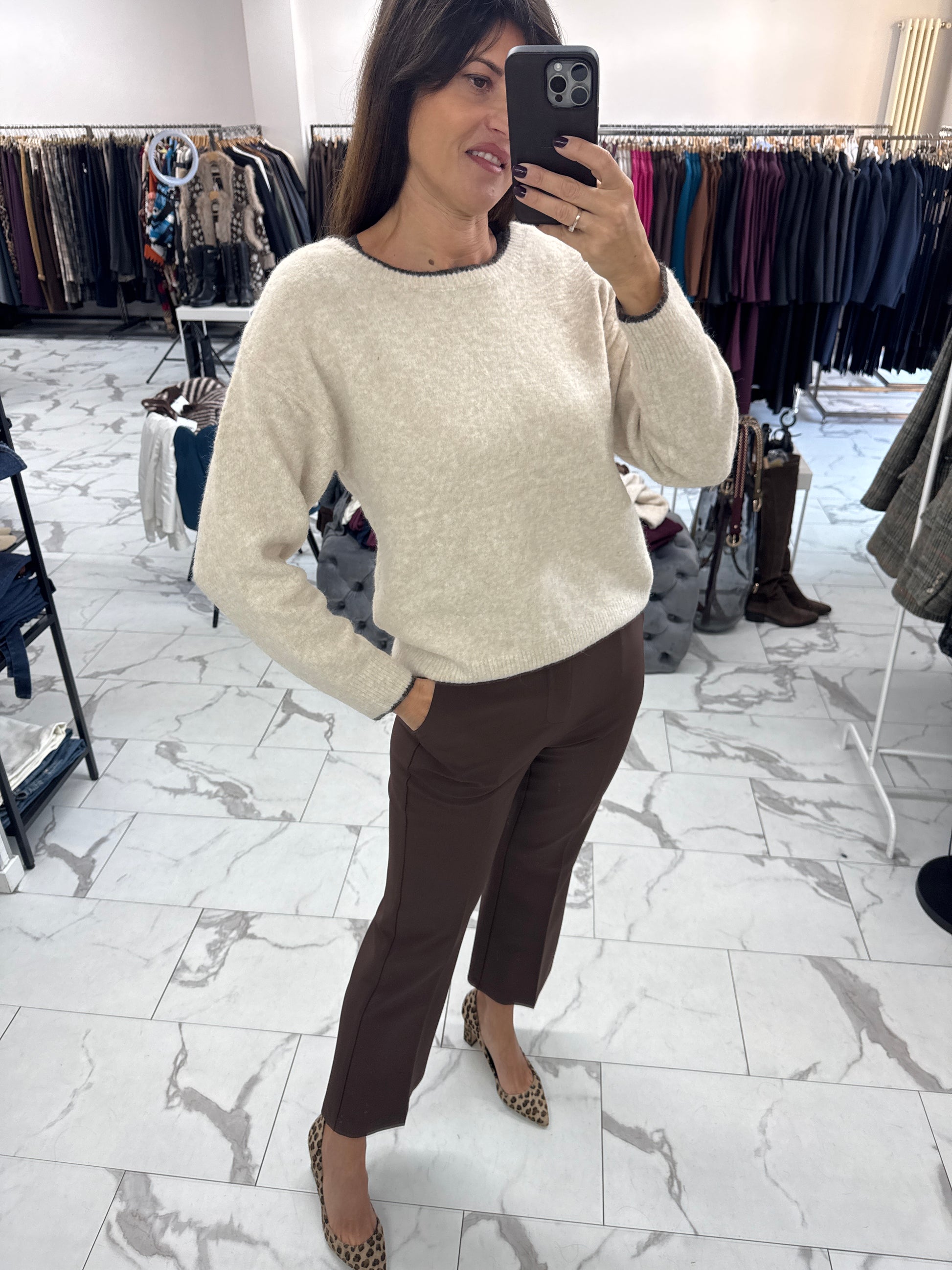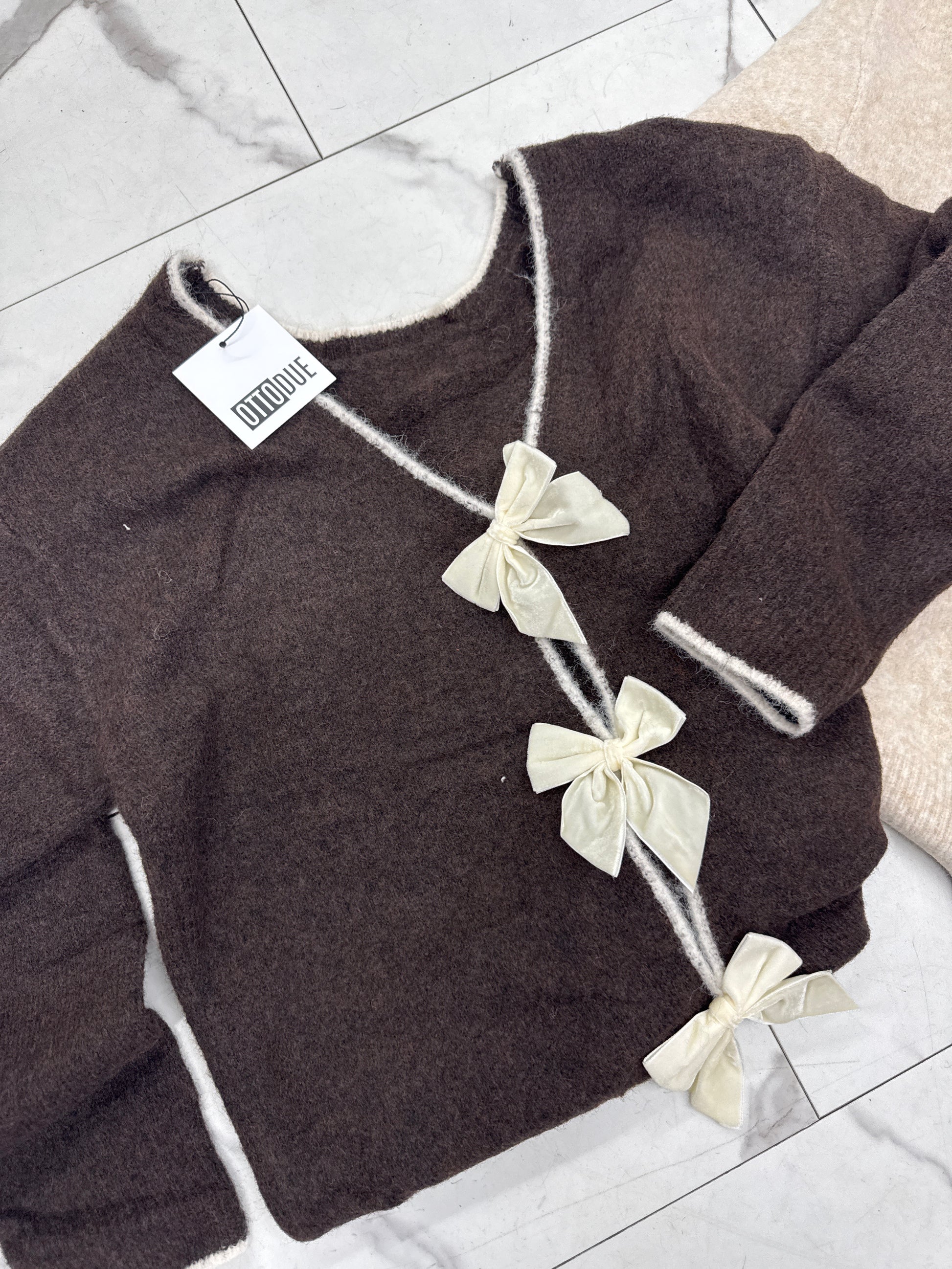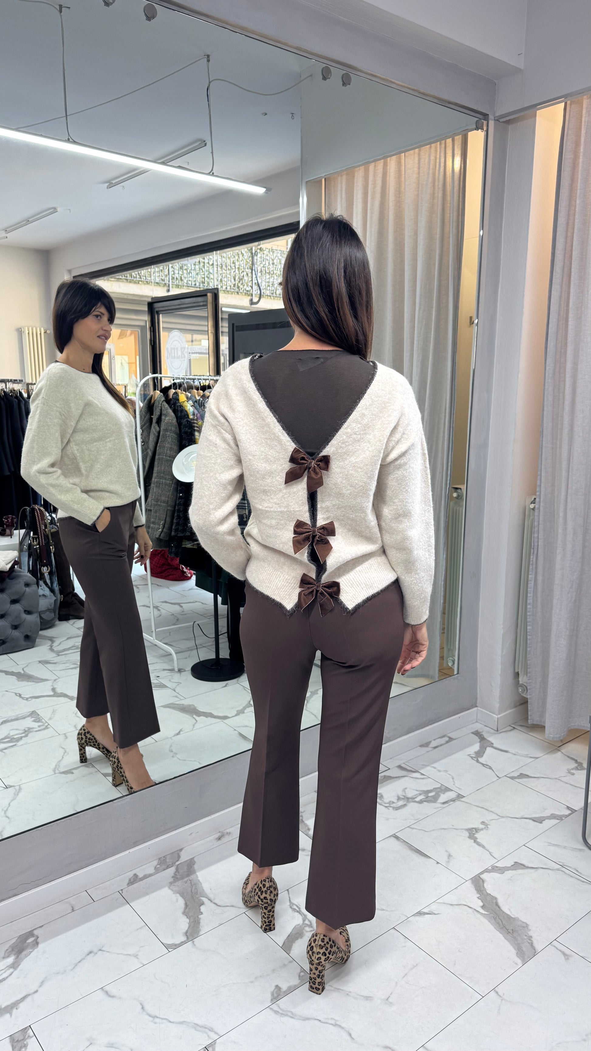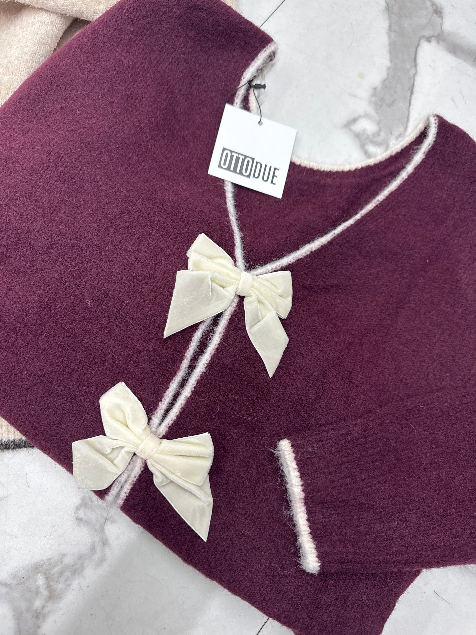 MAGLIONCINO SCOLLO V FIOCCHI sabbia/bordeaux/cioccolato