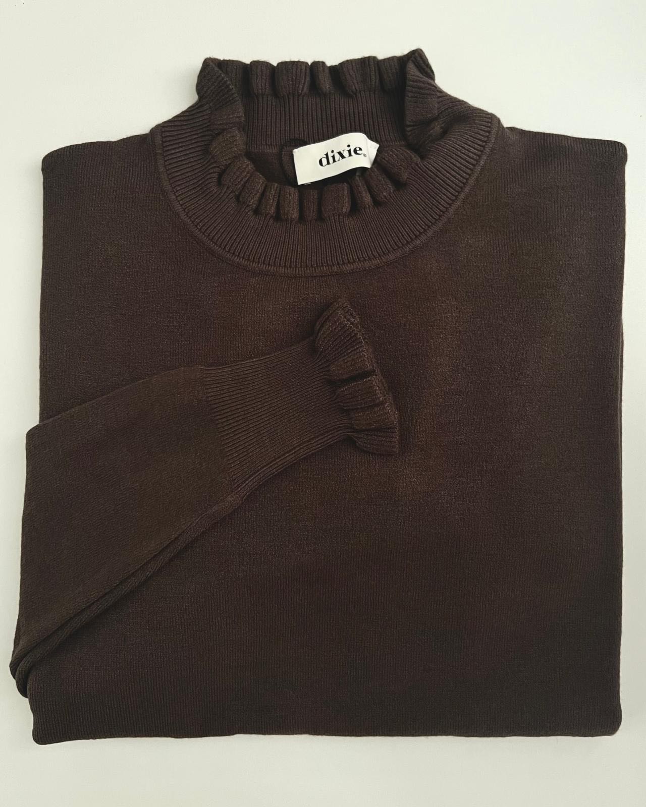 Maglioncino con girocollo arricciato e delicati volant ai polsi.