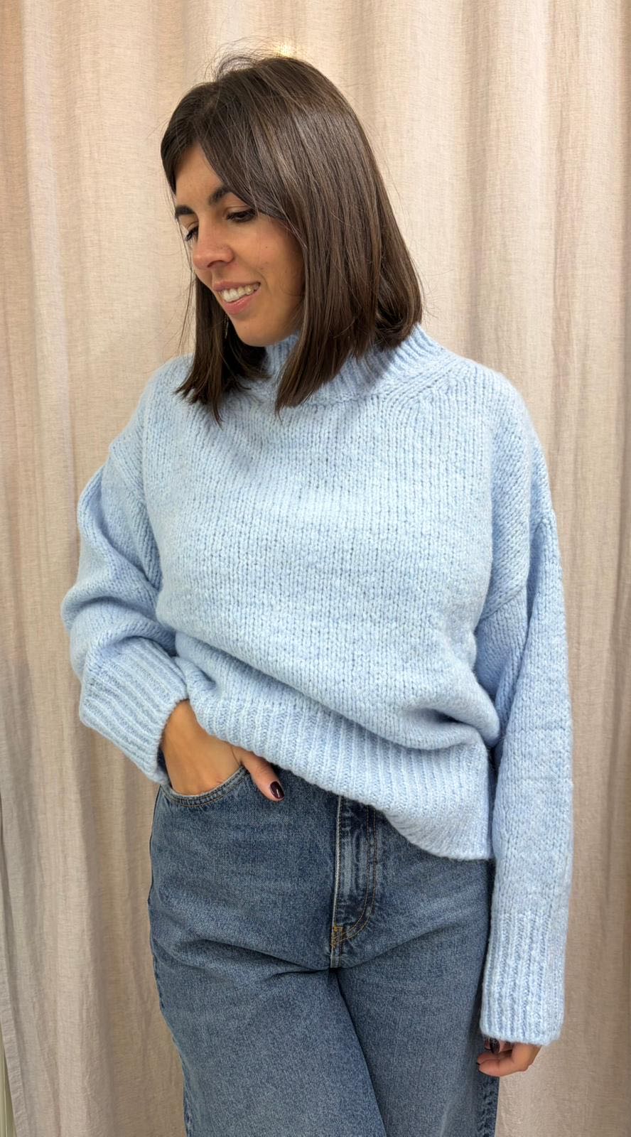MAGLIONE MISTO LANA COLLO ALTO AZZURRO