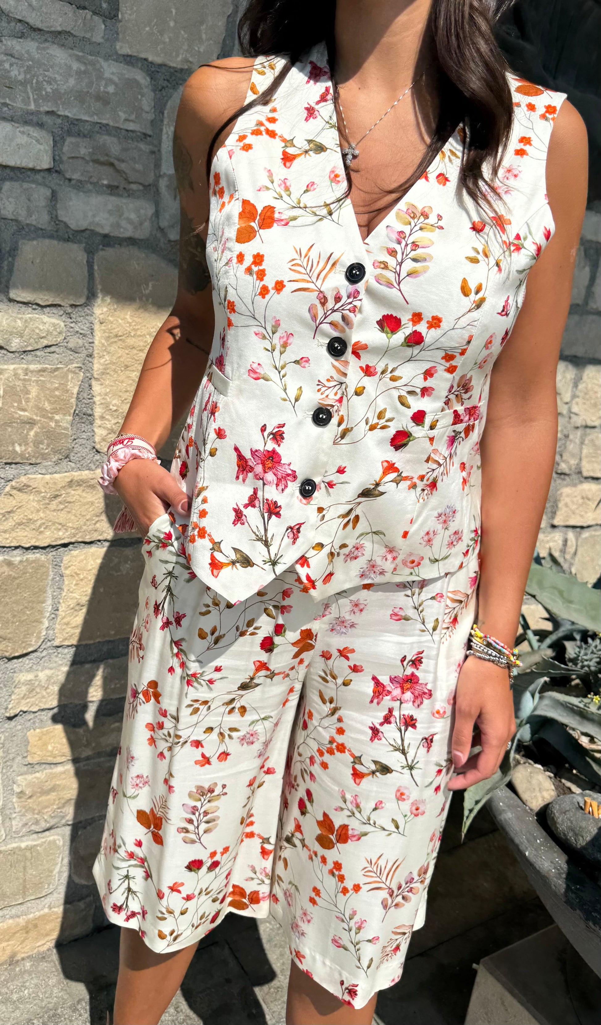 MARYLEY COMPLETO GILET BERMUDA PANNA FIORATO