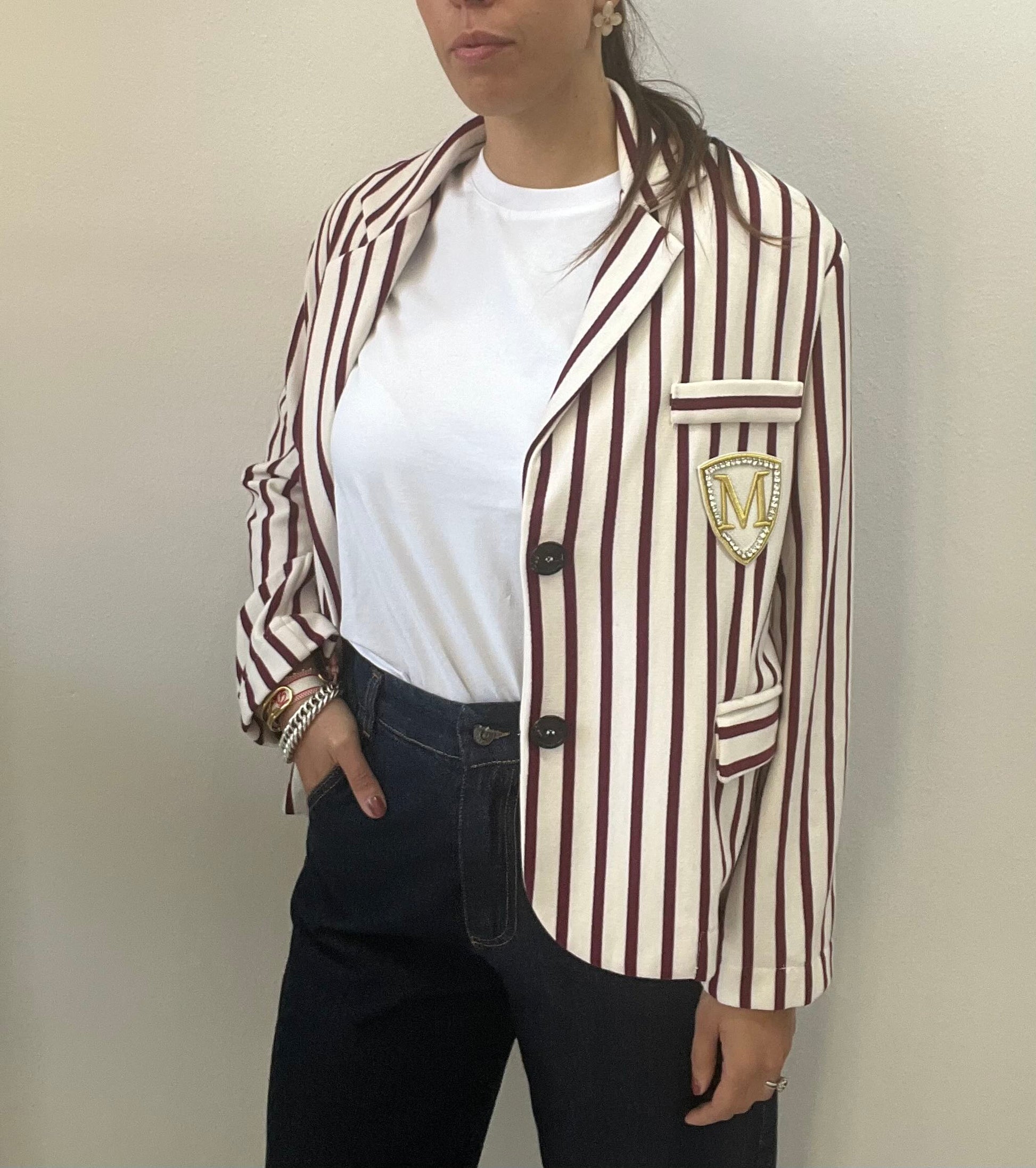 MARYLEY GIACCA RIGATA IN FELPA RIGATA SANGRIA MARYLEY