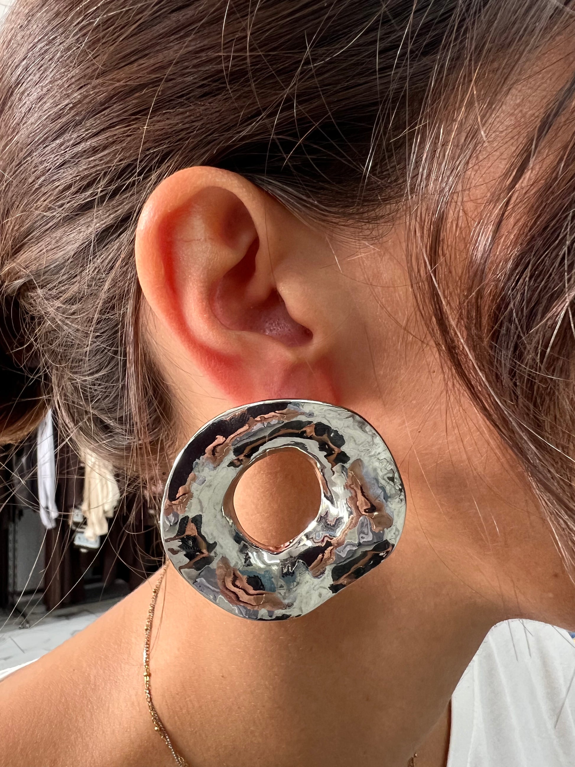 Maxi orecchino argento ovale asimmetrico