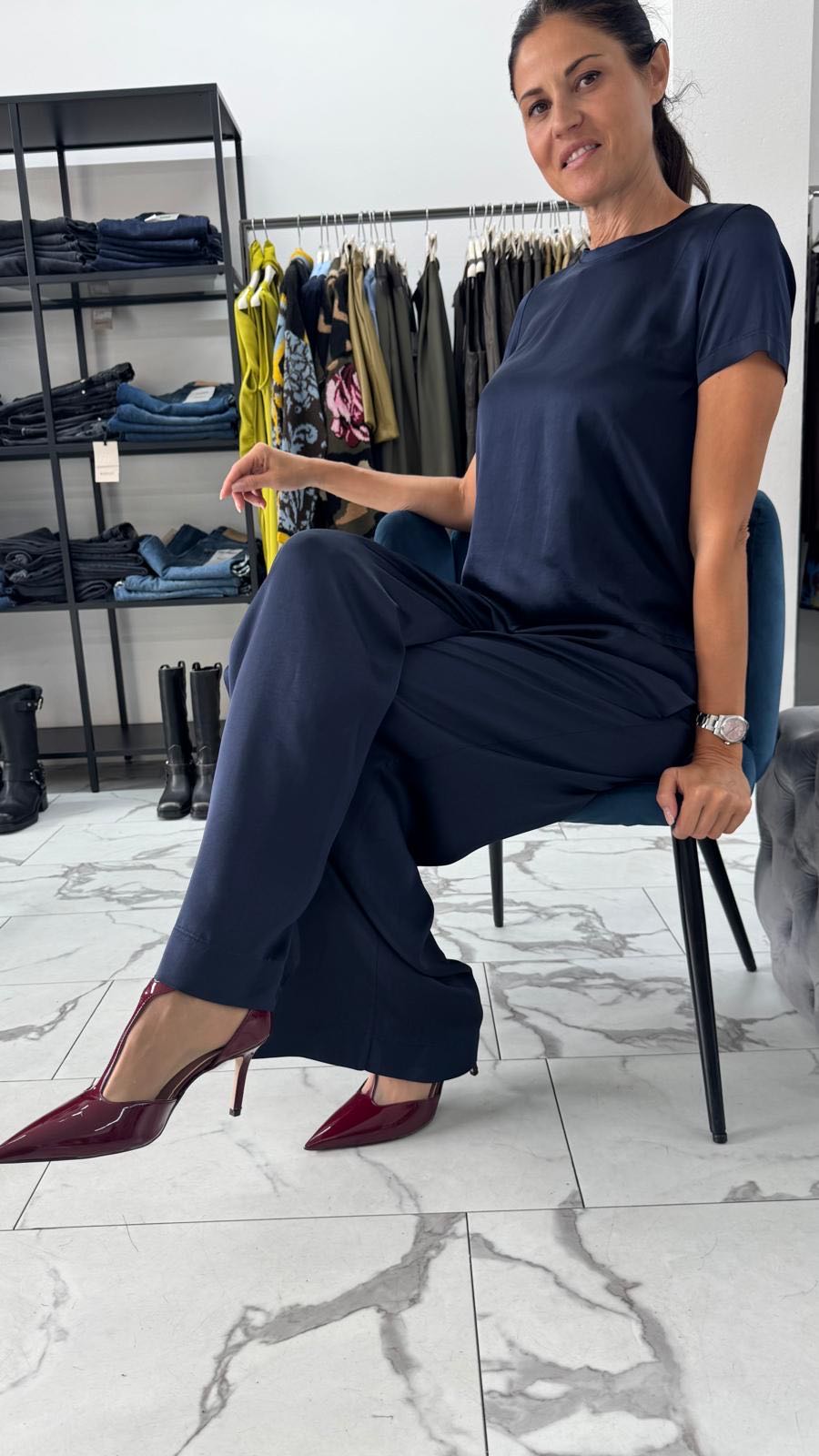 PANTALONE PALAZZO VISCOSA BLU