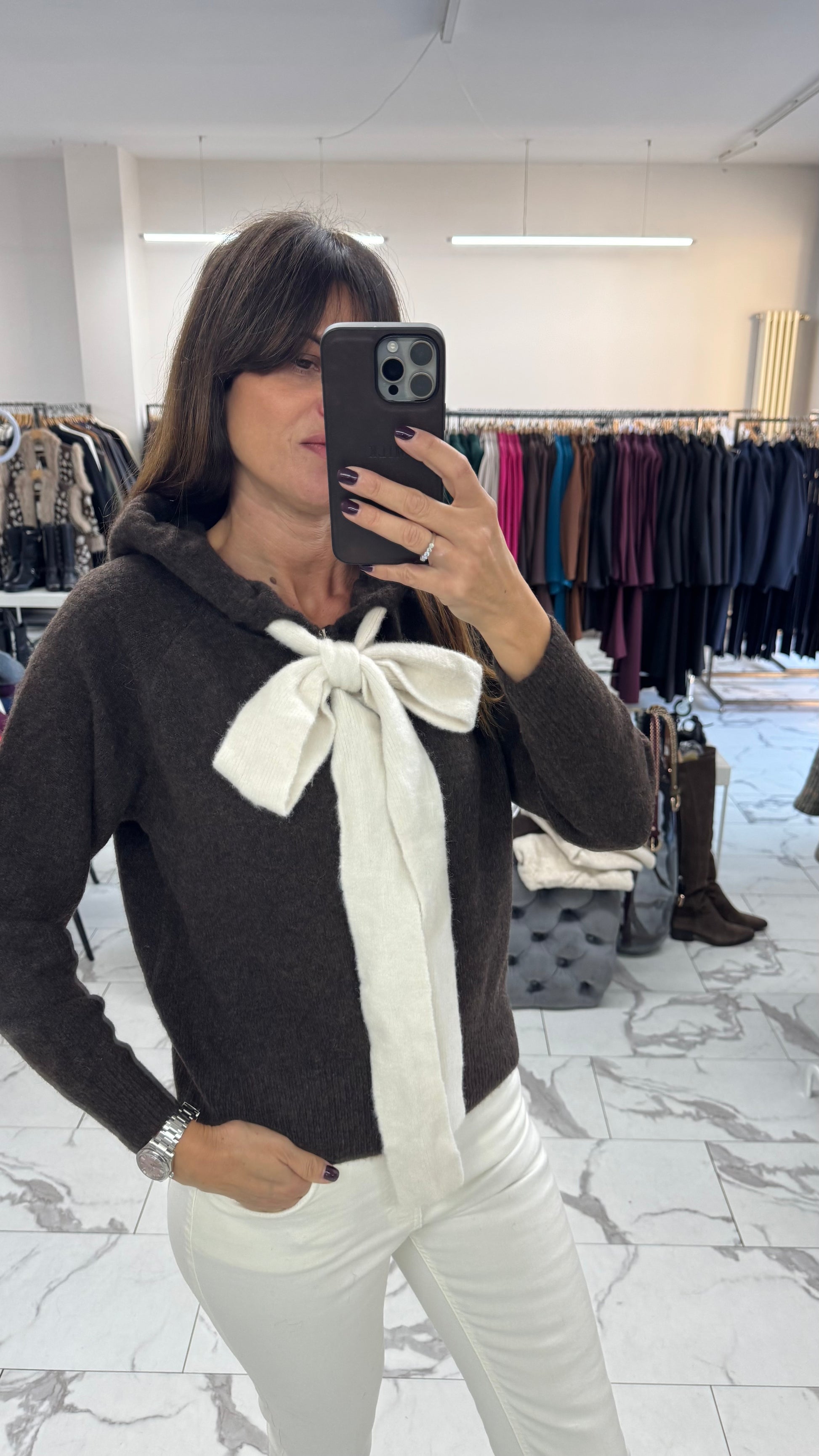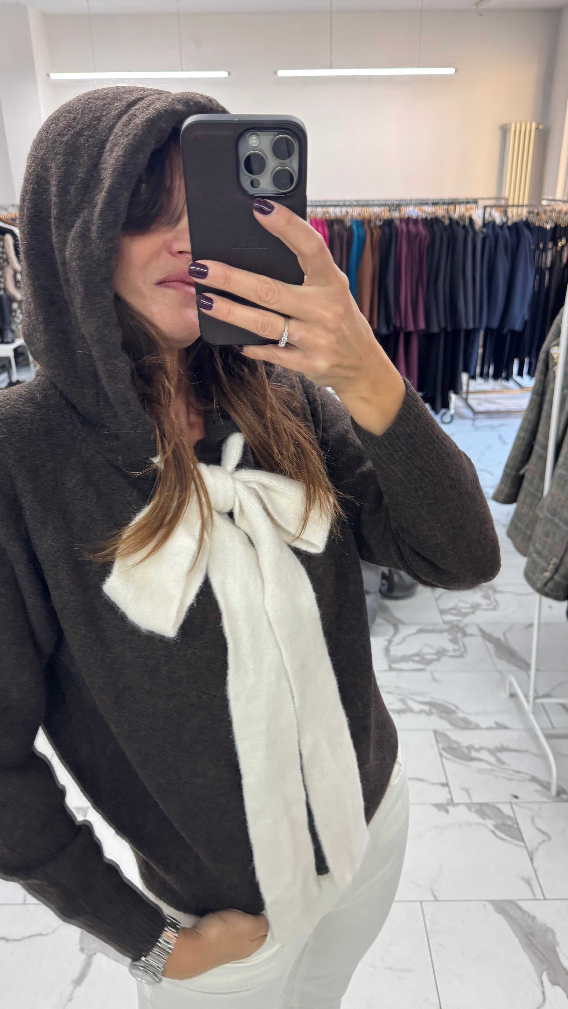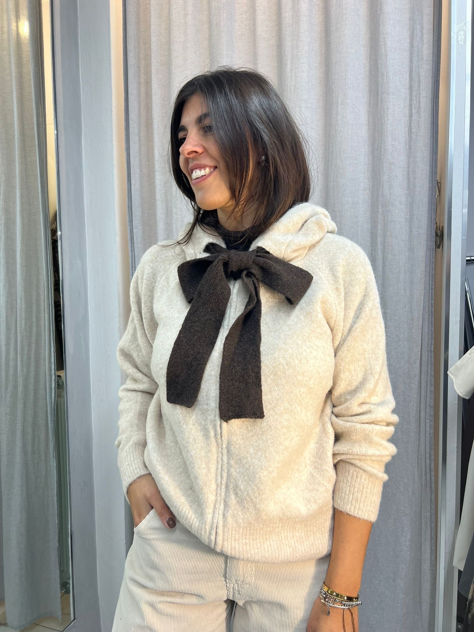 MAGLIONCINO ZIP CAPPUCCIO FIOCCO cioccolato/sabbia