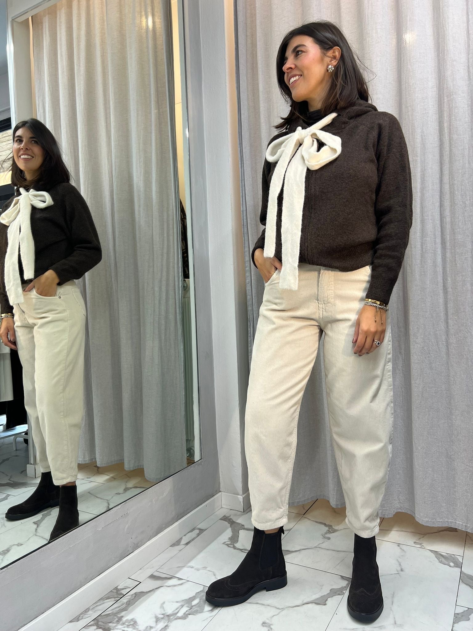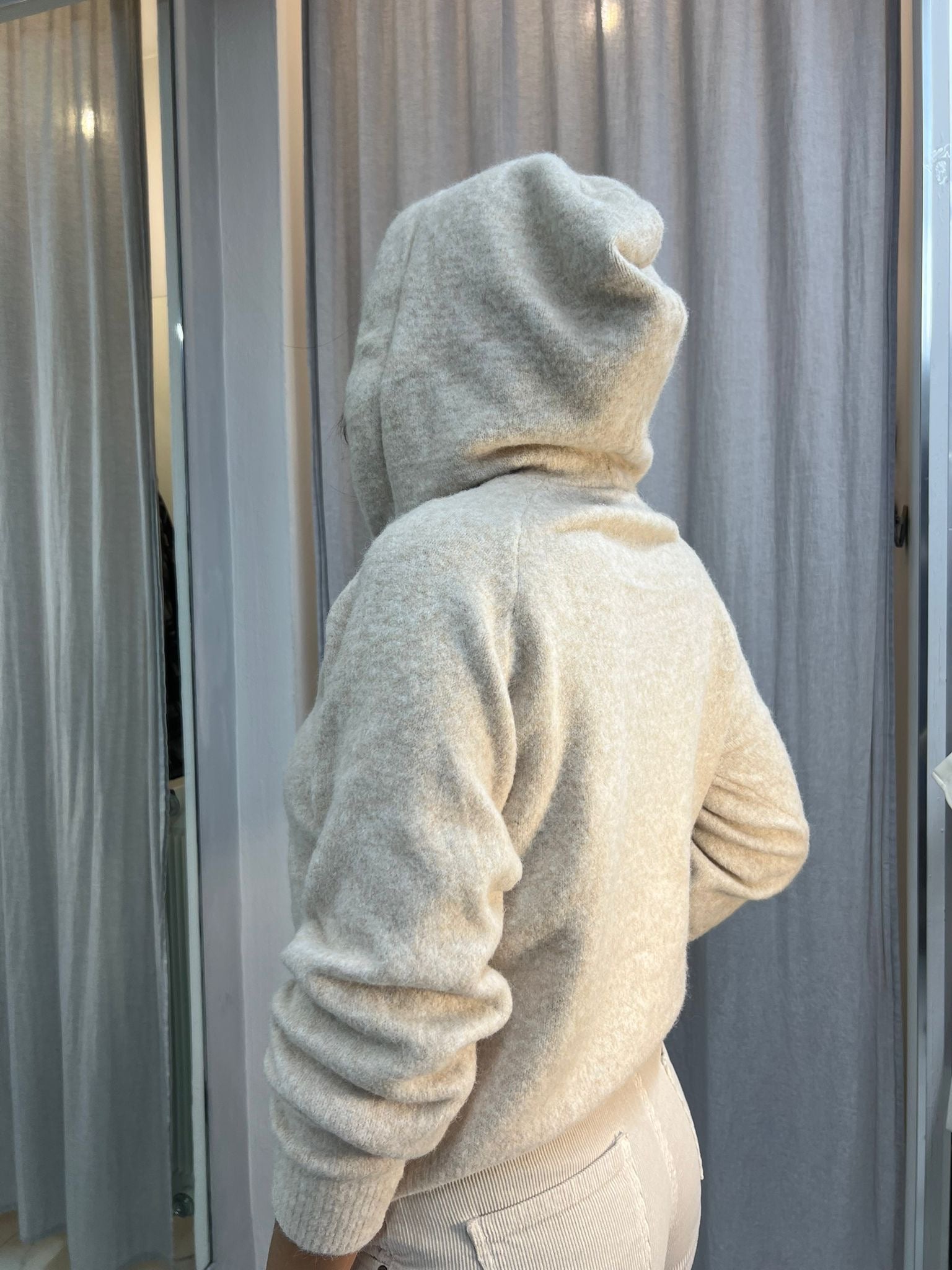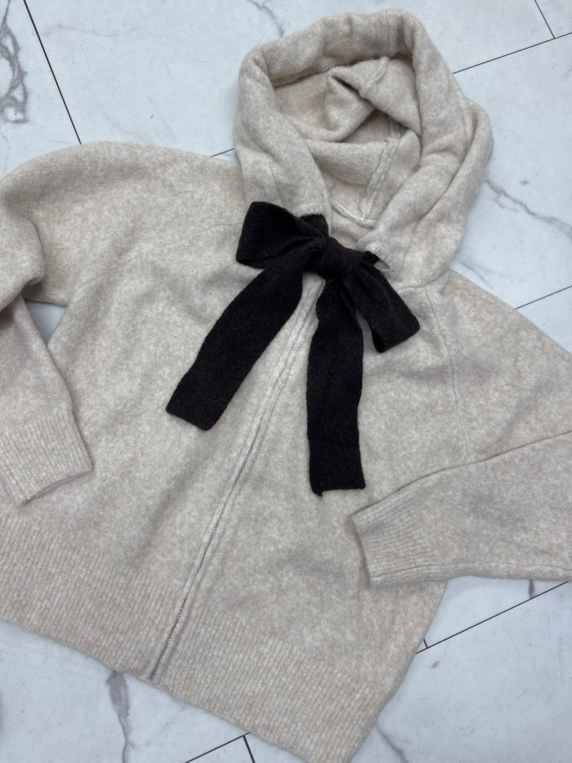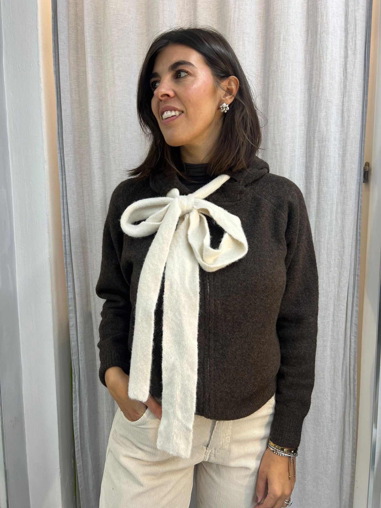 MAGLIONCINO ZIP CAPPUCCIO FIOCCO cioccolato/sabbia