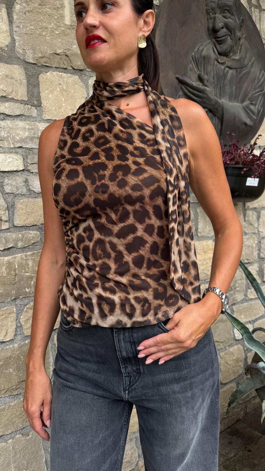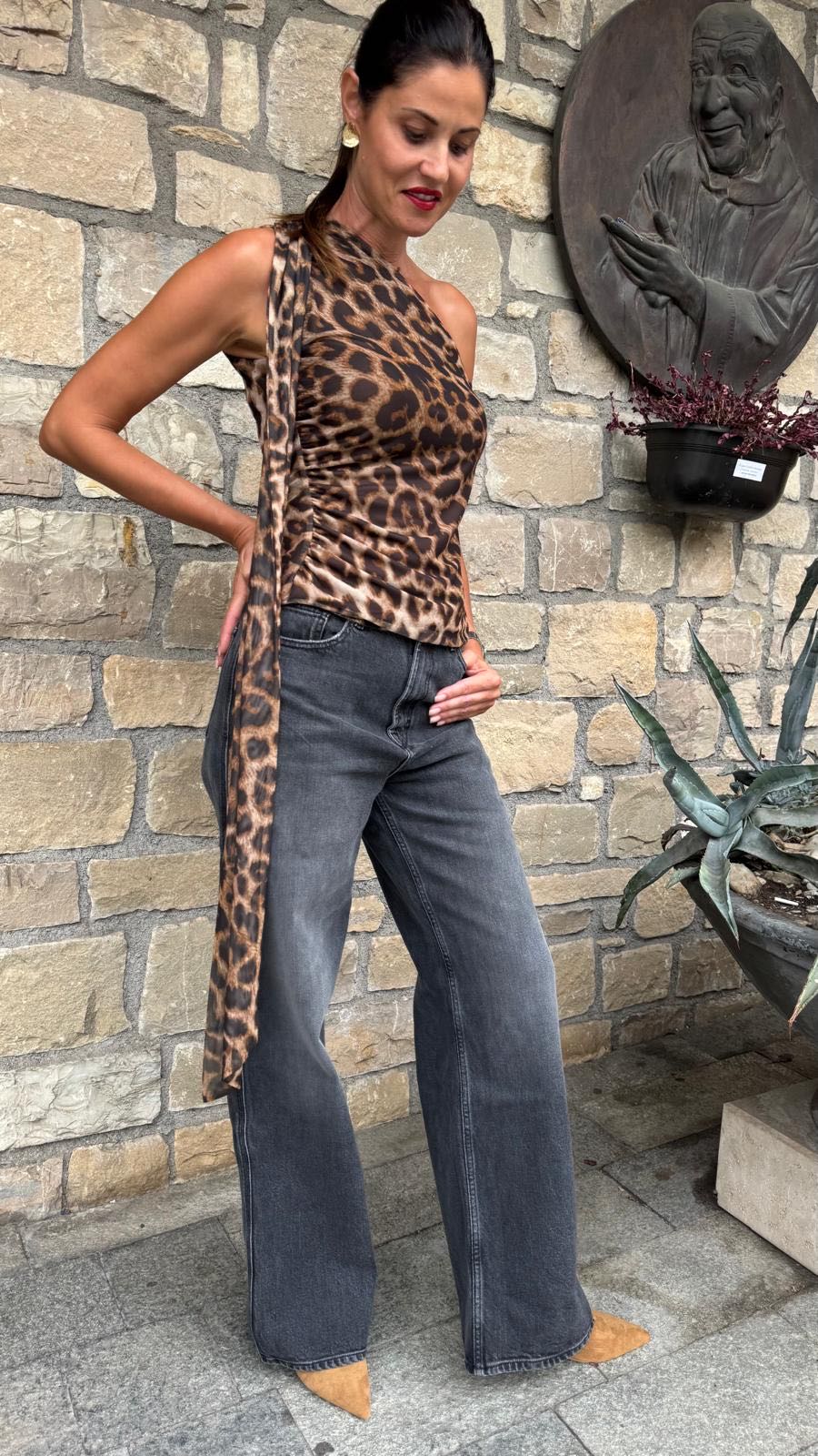 TOP MONOSPALLA MACULATO TULLE STRETCH